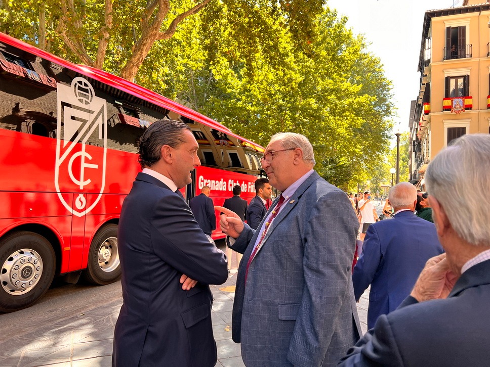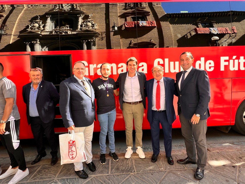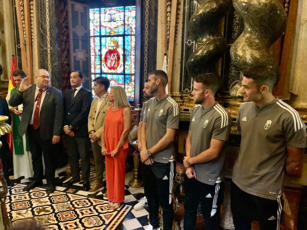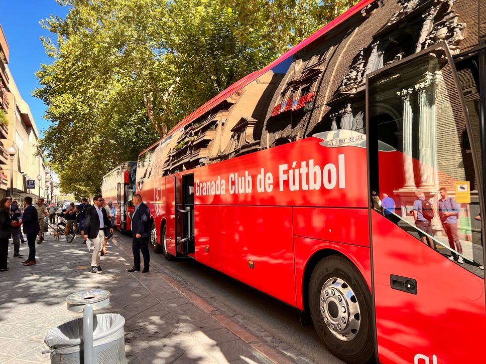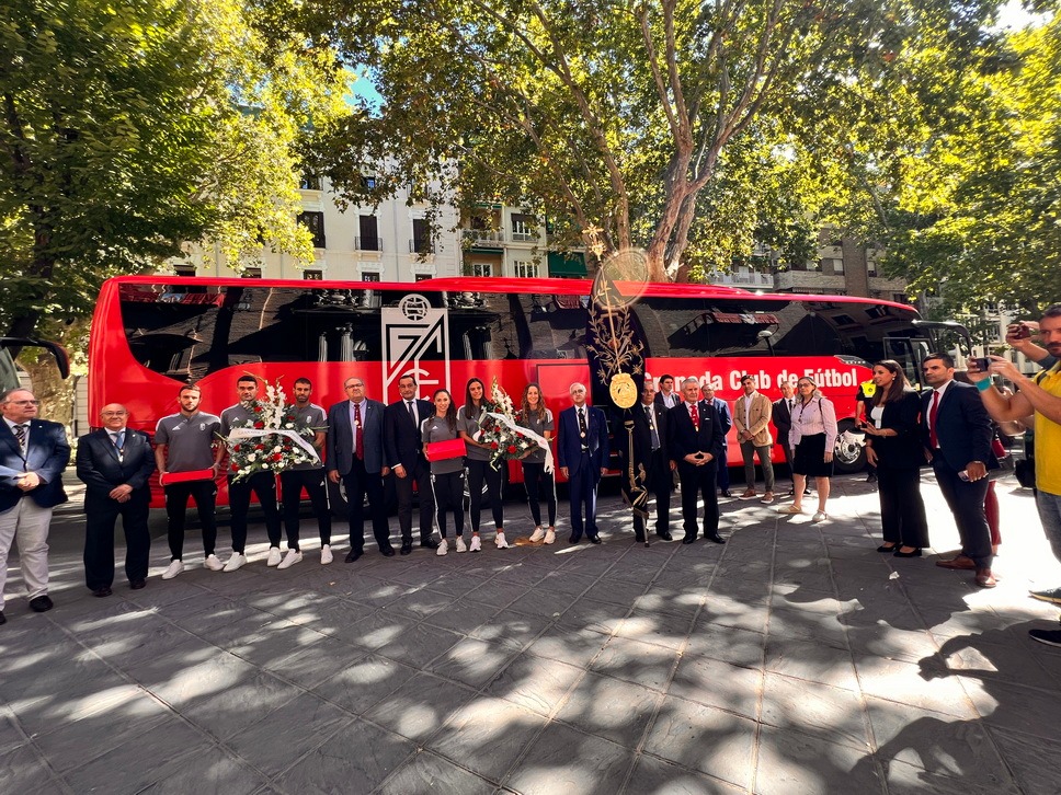 A las once y cuarenta y cinco minutos llegaban a las puertas de la Basílica de la Virgen de las Angustias dos autocares del Granada Club de Fútbol con todos los jugadores de la primera plantilla masculina y femenina, y representantes del Filial y del Fútbol Base, acompañados, en representación del Club, por D. Alfredo García Amado, Director General; Nico Rodríguez, Director Deportivo y Pepe Macanás.
