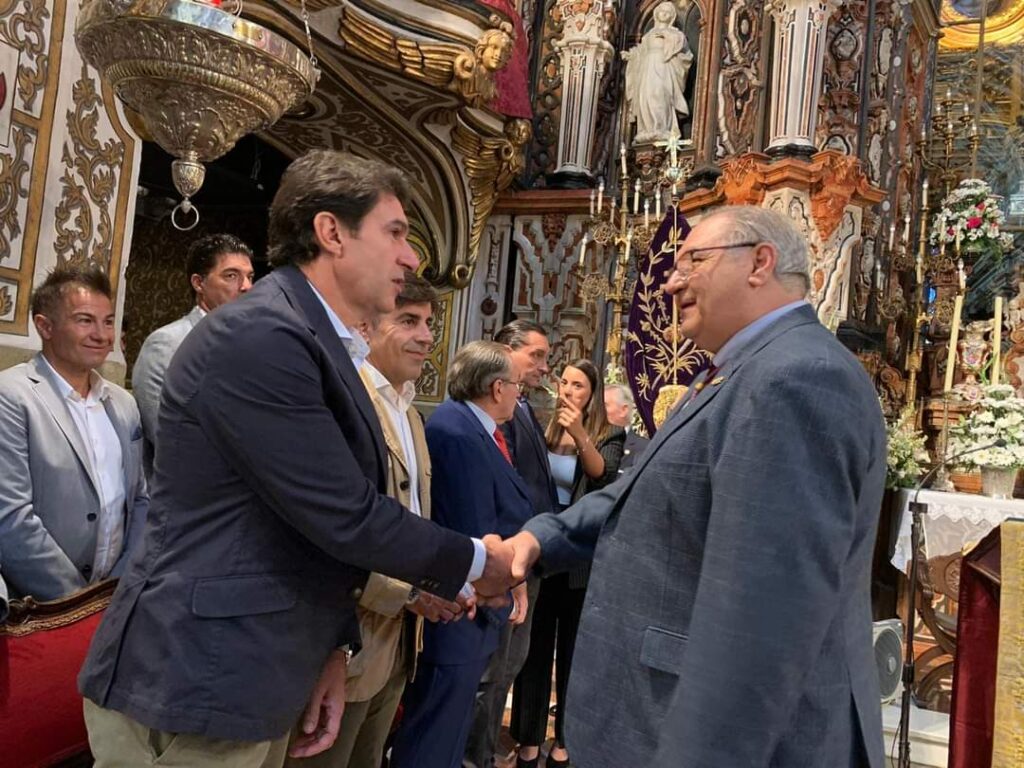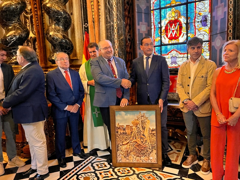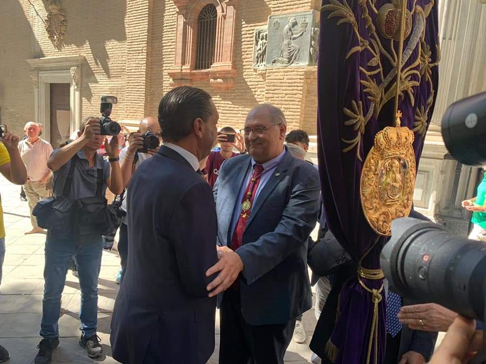 El Hermano Mayor de la Muy antigua, Pontificia, Real e Ilustre Hermandad Sacramental de Ntra. Sra. de las Angustias, Patrona de Granada y su archidiócesis, D. Antonio González Martín, acompañado por miembros de su Junta de Gobierno y con el Estandarte de la Hermandad, les dieron la bienvenida en la puerta de la Basílica de la Patrona.