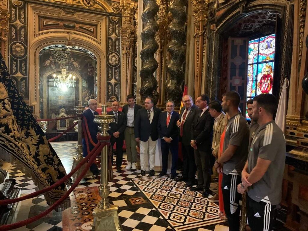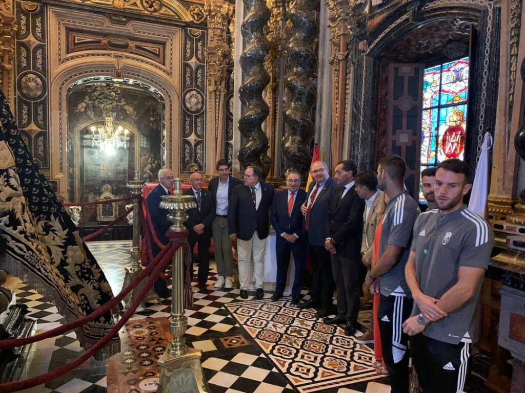 Al terminar la Eucaristía, todos los asistentes del Granada C. F. pasaron al Camarín de la Virgen donde el Hermano Mayor manifestó su alegría por la participación del Granada C. F en los cultos de este año, sin tantas restricciones como en estos dos últimos años. Les deseó mucha suerte, que hay que buscarla con la constancia, el valor, el esfuerzo y la dedicación permanente. D. Blas, por su parte manifestó que todo lo que hacemos por amor es religioso, Dios está ahí, ya sea jugando al futbol, o haciendo cualquier actividad en la que pongamos generosidad, unión y compañerismo para lograr el fruto, que se persigue alcanzar.
