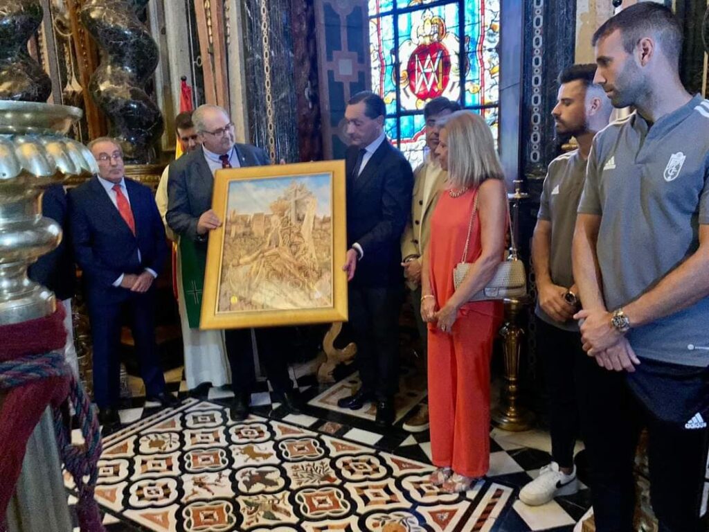 El Hermano Mayor de la Hermandad entrego al Director General del Granada, D. Alfredo, un cuadro de la Virgen de las Angustias como recuerdo de esta celebración.