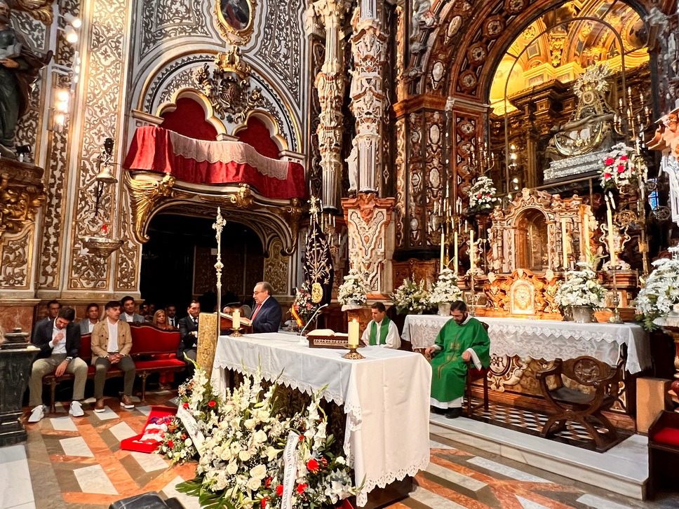 En el inicio de la celebración de la Sta. Misa el Hermano Mayor dijo, dirigiéndose a la Stma. Virgen: “Hoy te invocamos como Madre de la esperanza, y nunca mejor dicho, con la gran esperanza. Que esta virtud no falte nunca en nuestras vidas. Recibimos hoy al Granada Club de Fútbol, que como siempre, hasta incluso en los años de pandemia, que fue el mejor año en el aspecto deportivo, ahí estaba la Virgen. Esperemos que se repita. Celebra el Padre D. José Antonio Vinuesa García”