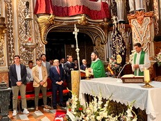 La Santa Misa fue presidida por el P. José Antonio Vinuesa García, Sacerdote Diocesano, acompañado por D. Blas Gerardo Gordo Jiménez, Párroco de la Basílica y Consiliario de la Hermandad. Las lecturas fueron realizadas por miembros del Club.