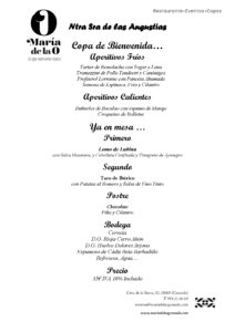 Nos han preparado un excelente menú al precio de 35 €. Las invitaciones para el almuerzo están ya disponibles en la oficina de la Hermandad. También puedes comunicar tu voluntad de participar a cualquier miembro de la Junta de Gobierno.