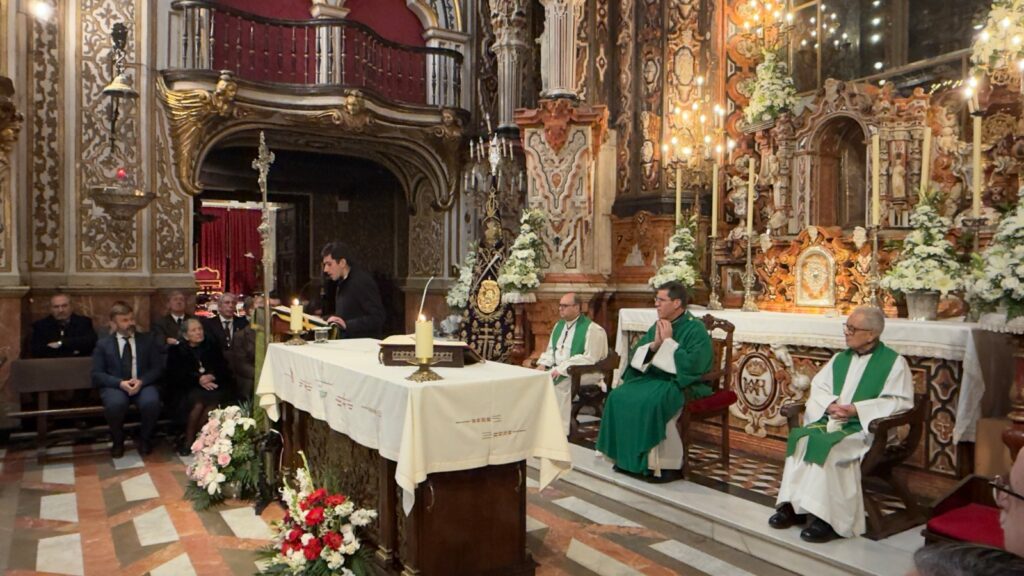 Antes de empezar la Eucaristía, D. Manuel Alejandro Amador, Prefecto de Cultos y Ceremonias de la Hermandad, explicó cómo la Imagen de la Stma. Virgen de las Angustias fue traída a Granada en un atardecer del mes de febrero de 1553.