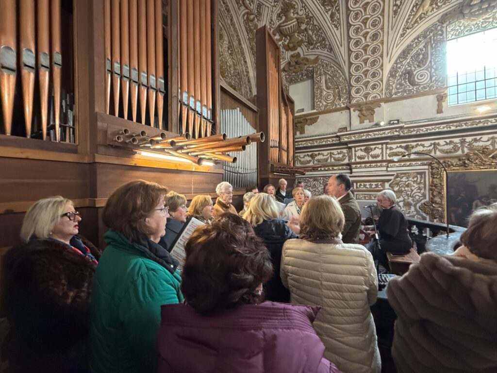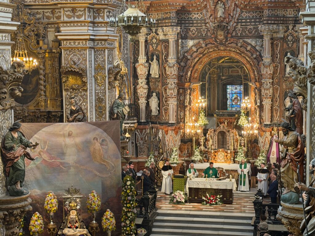La Santa Misa fue acompañada por la Coral Parroquial Virgen de las Angustias, dirigida por D. Adolfo Urquiza, Director de la Coral, que interpretó la Missa Brevis de Paul L. Kauffman y demás cantos, que han sido muy bien interpretados por los miembros de la Coral, contribuyendo a la solemnidad y recogimiento espiritual de todas las personas que llenaban la Basílica en esta celebración.