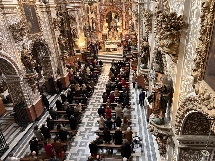 La Santa Misa fue acompañada por la Coral Parroquial Virgen de las Angustias, dirigida por D. Adolfo Urquiza, Director de la Coral. Los cantos seleccionados han sido muy bien interpretados por los miembros de la Coral y que han contribuido a la solemnidad y recogimiento espiritual de todas las personas que llenaban la Basílica en esta celebración.