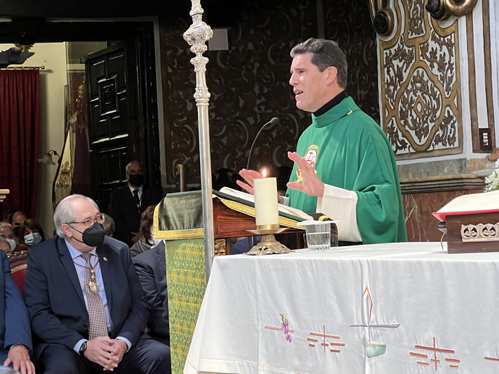 D. Blas ha empezado su homilía diciendo: “En la alegría del domingo hay un motivo de riqueza particular, que es la celebración de esta familia especial de la Hermandad de la Virgen de las Angustias, que vive con este amor señalado a lo largo del año en este día de la Aparición de la Virgen. Me da mucha alegría que en la vida de la Iglesia podamos vivir este relevo entre los grupos cristianos, cogiendo a Antonio González y al equipo, que va a colaborar con él en esta andadura de