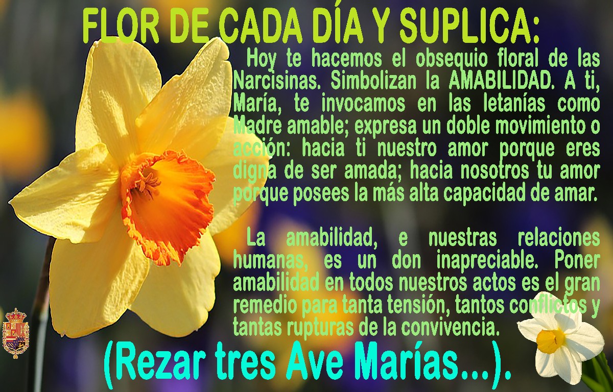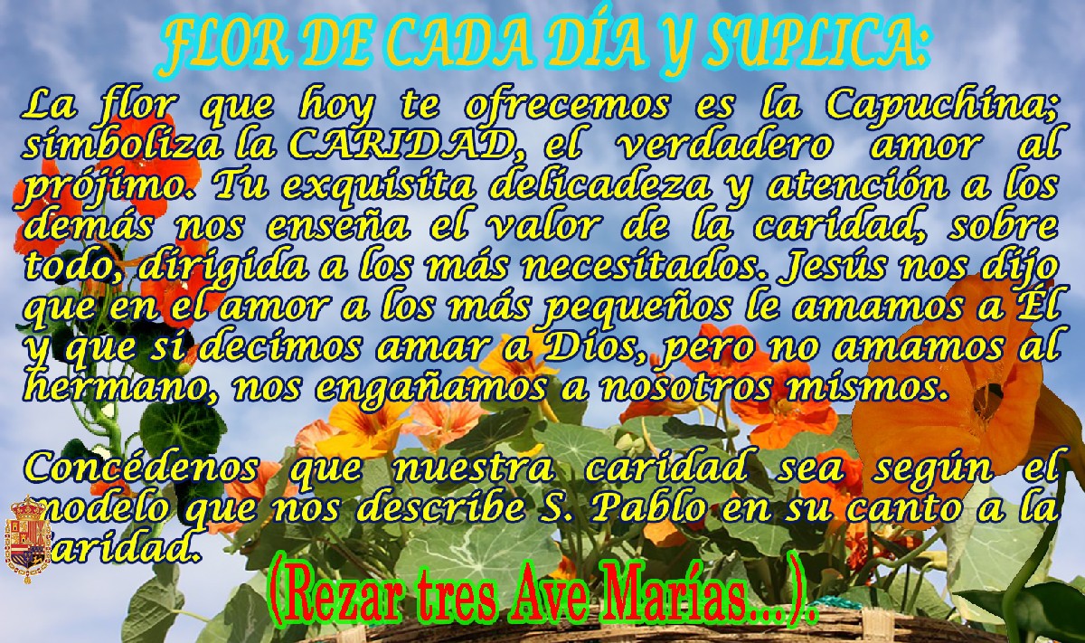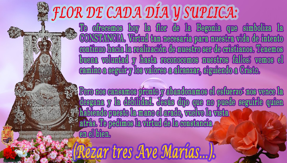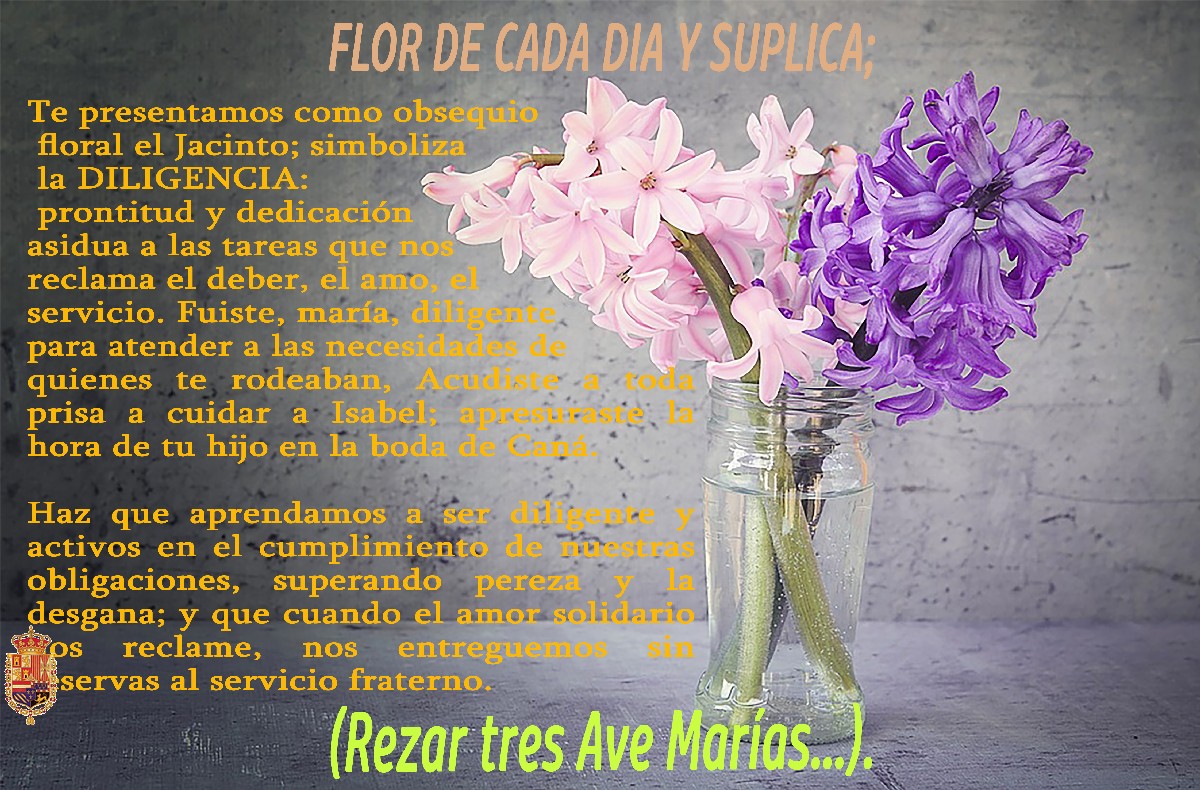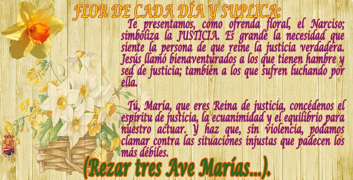 Durante el mes de mayo (mes de María Santísima), en los distintos grupos de Whatapp de la Hermandad se fueron publicando diariamente las flores que simbolizan una virtud: Generosidad, Fe, Obediencia, Laboriosidad, Misericordia, Bondad, Tolerancia….