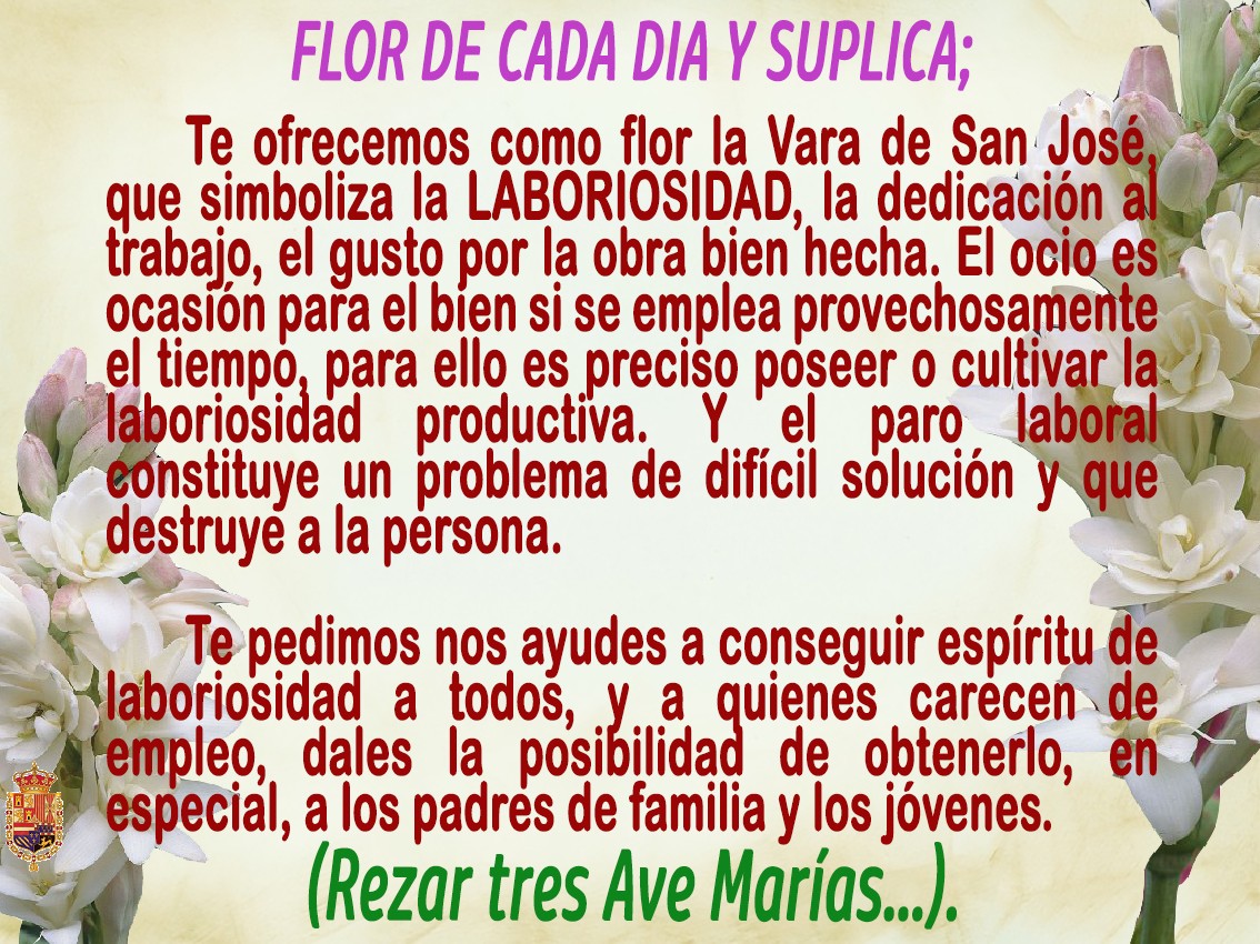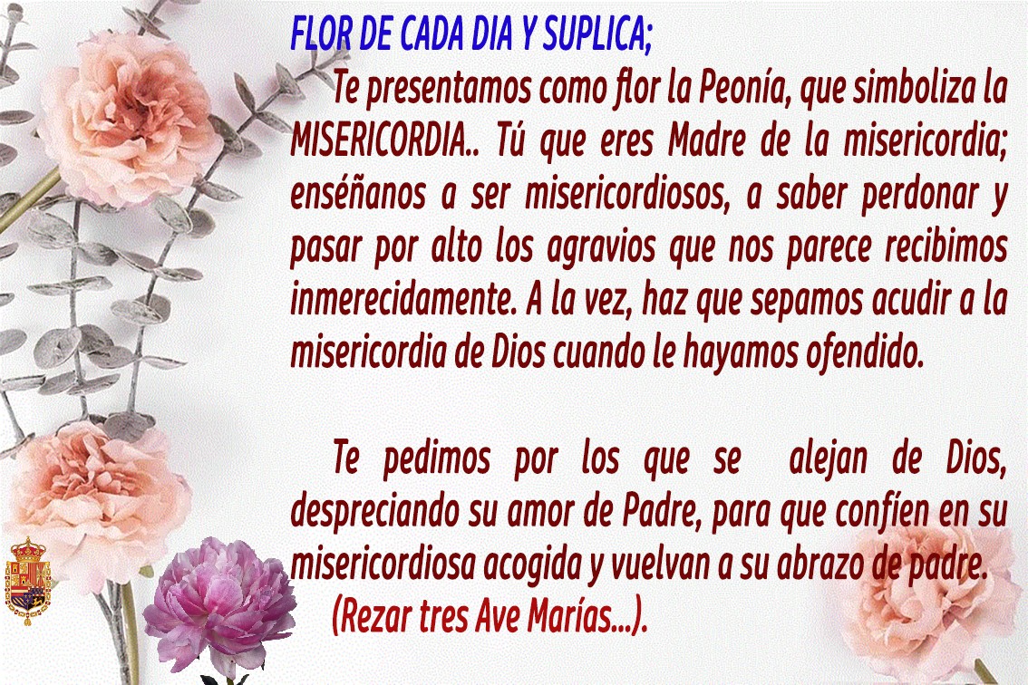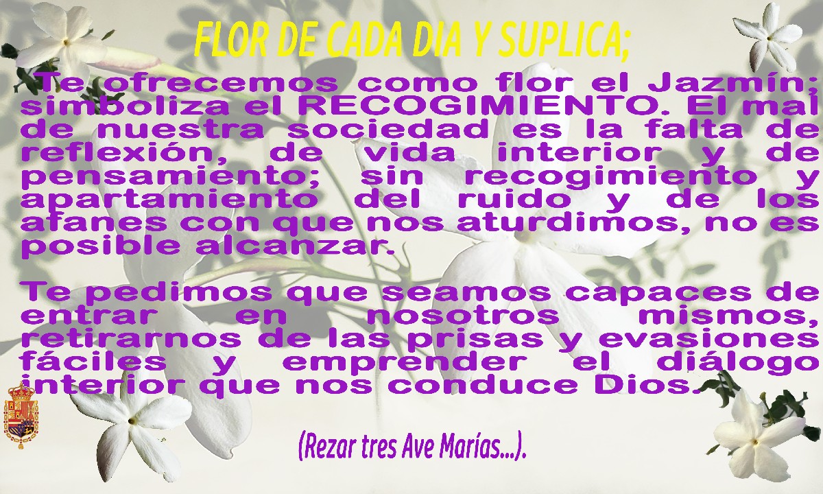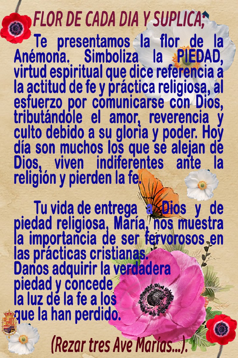 Durante el mes de mayo (mes de María Santísima), en los distintos grupos de Whatapp de la Hermandad se fueron publicando diariamente las flores que simbolizan una virtud: Generosidad, Fe, Obediencia, Laboriosidad, Misericordia, Bondad, Tolerancia….