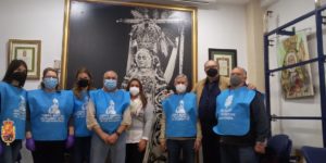 Son las 9:30 de la mañana del miércoles. Todo está preparado en el almacén de la Obra Social para un nuevo reparto, tras el inventariado, viaje a Mercagranada y reposición de existencias, a través del Banco de Alimentos, llevada a cabo el día de antes. Los voluntarios de la Obra Social, provistos ya de su peto y guantes, empiezan a llamar a las familias, preparadas también con sus carritos y bolsas. Para evitar cualquier tipo de aglomeración y mantener siempre la distancia de seguridad se les ha citado previamente, distribuidas en distintas franjas horarias. Comienza entonces una intensa jornada de trabajo, que se prolongará hasta cerca del mediodía. El almacén se convierte, entonces, en un ir y venir incesante de voluntarios, todos miembros de la Hermandad, para llenar de fruta, verdura, alimentos de primera necesidad y productos de higiene personal los carros de cada familia. De forma paralela, en la oficina de la Obra Social se atiende telefónica o presencialmente a quienes solicitan ayuda, se realiza todo el papeleo y se actualiza la base de datos con las nuevas incorporaciones de familias. Todo canalizado a través de los informes previos de las Cáritas Diocesana y parroquiales, cumpliendo siempre con rigurosidad los requisitos exigidos y estudiando caso por caso las necesidades de cada familia. Son muchos los que se han quedado sin trabajo, tienen un salario mínimo, reciben alguna ayuda del Gobierno, no pueden llegar a fin de mes o les falta para comer.