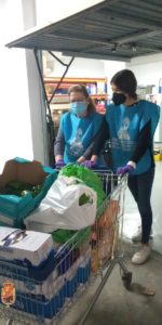 Son las 9:30 de la mañana del miércoles. Todo está preparado en el almacén de la Obra Social para un nuevo reparto, tras el inventariado, viaje a Mercagranada y reposición de existencias, a través del Banco de Alimentos, llevada a cabo el día de antes. Los voluntarios de la Obra Social, provistos ya de su peto y guantes, empiezan a llamar a las familias, preparadas también con sus carritos y bolsas. Para evitar cualquier tipo de aglomeración y mantener siempre la distancia de seguridad se les ha citado previamente, distribuidas en distintas franjas horarias. Comienza entonces una intensa jornada de trabajo, que se prolongará hasta cerca del mediodía. El almacén se convierte, entonces, en un ir y venir incesante de voluntarios, todos miembros de la Hermandad, para llenar de fruta, verdura, alimentos de primera necesidad y productos de higiene personal los carros de cada familia. De forma paralela, en la oficina de la Obra Social se atiende telefónica o presencialmente a quienes solicitan ayuda, se realiza todo el papeleo y se actualiza la base de datos con las nuevas incorporaciones de familias. Todo canalizado a través de los informes previos de las Cáritas Diocesana y parroquiales, cumpliendo siempre con rigurosidad los requisitos exigidos y estudiando caso por caso las necesidades de cada familia. Son muchos los que se han quedado sin trabajo, tienen un salario mínimo, reciben alguna ayuda del Gobierno, no pueden llegar a fin de mes o les falta para comer.