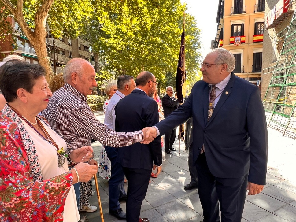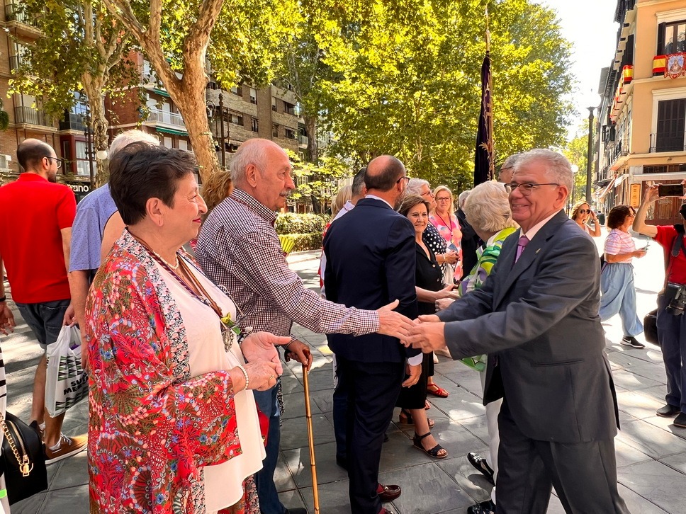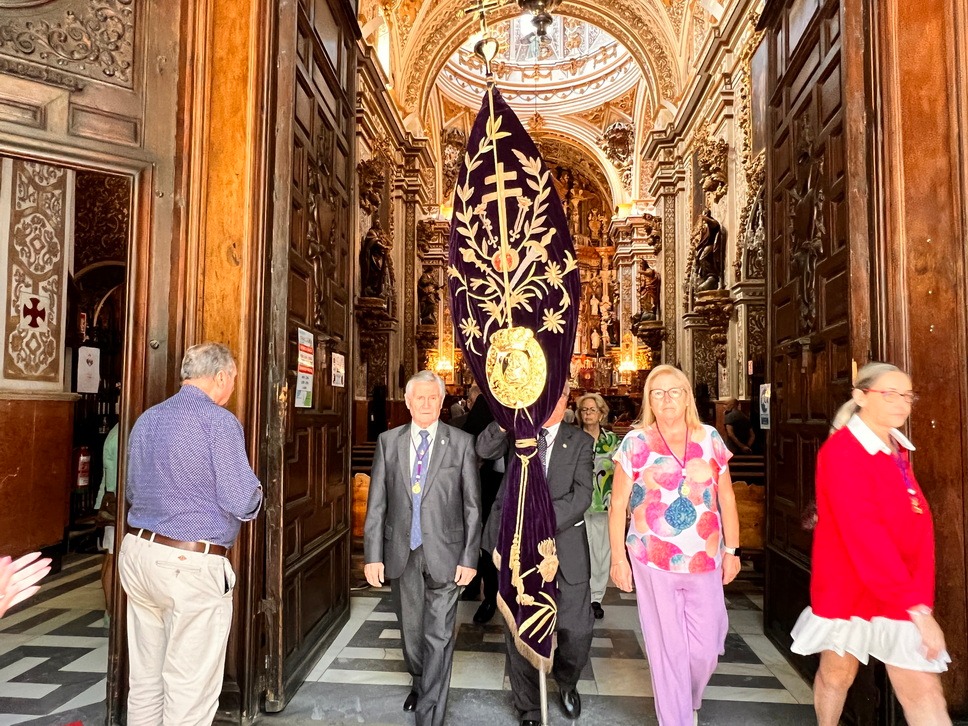 El Hermano Mayor de la Muy antigua, Pontificia, Real e Ilustre Hermandad Sacramental de Ntra. Sra. de las Angustias, Patrona de Granada y su archidiócesis, D. Antonio González Martín, acompañado por miembros de su Junta de Gobierno y con el Estandarte de la Hermandad, les dieron la bienvenida en la puerta de la Basílica de la Patrona.