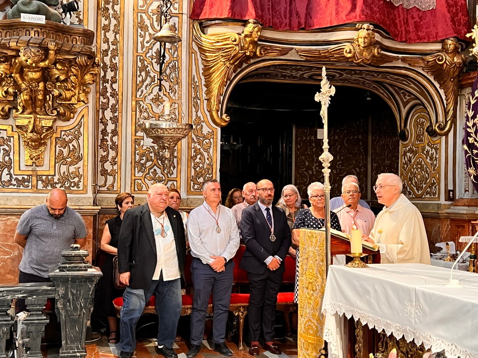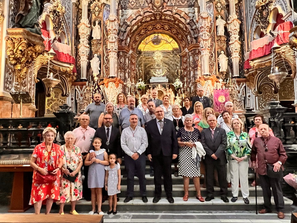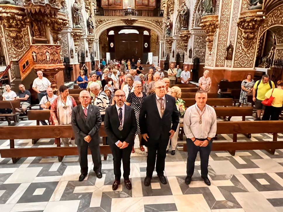 Todos entraron al templo y los miembros de la Hermandad del Rocío se situaron en el lateral derecho del altar mayor y los miembros de la Hermandad de la Virgen de las Angustias en el lateral izquierdo.