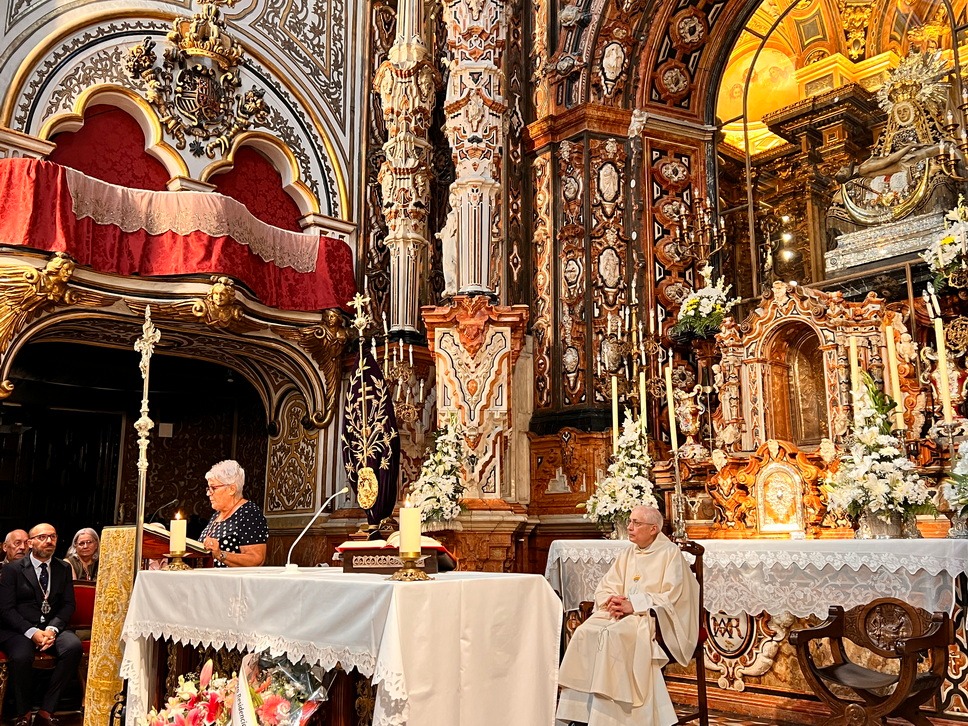 La Eucaristía fue acompañada por el órgano de la Basílica y las canciones, interpretadas con una belleza extraordinaria por María Angustias Linares y terminó con el canto del Himno a la Stma. Virgen de las Angustias, con vítores y aplausos, por parte de todas las personas participantes. Al terminar la Eucaristía, todos los integrantes de la Hermandad del Rocío, después de hacerse una foto-recuerdo en la escalinata del Altar Mayor pasaron al Camarín de la Virgen donde el Hermano Mayor manifestó su alegría por la participación en los cultos de este año. La visita terminó con el rezo del Ave María a la Stma. Virgen. Todos los asistentes manifestaron su alegría por participar en estos cultos.
