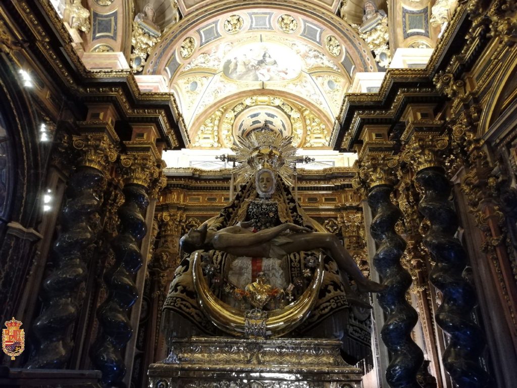 Una vez acabado el periodo estival, en la tarde de hoy la Santísima Virgen de las Angustias se presentaba ataviada con el manto de los alféreces de cara a los cultos que se van a desarrollar a partir de mañana y que culminarán con la solemne procesión de Nuestra Madre el último domingo de septiembre por las calles de Granada.
