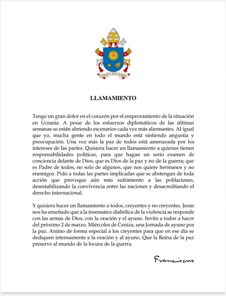 LLAMAMIENTO DEL PAPA FRANCISCO