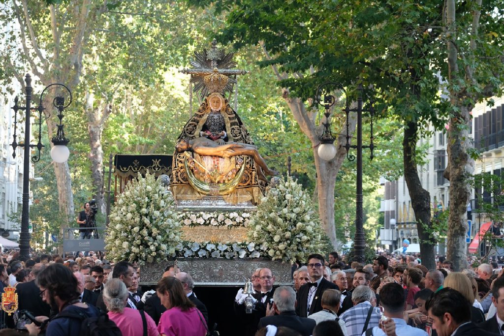 Este traje, en realidad, está cortado, tejido y tintado a imagen y semejanza de María. Ese es su misterio. Esa es su grandeza. Y Granada, enamorada de la Virgen de las Angustias (nos lo va a demostrar una vez más y de qué manera), ve este traje, lo ve y lo reconoce.