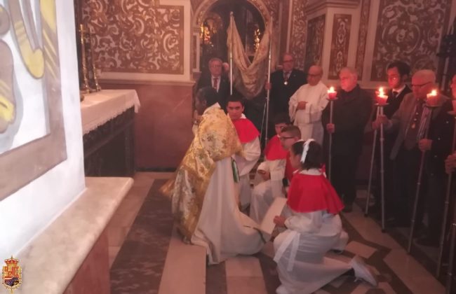 Como todos los segundos viernes de mes, en la noche de del pasado día 11, se celebró la Misa de Hermandad con posterior procesión con Santísimo Sacramento por las capillas de la Basílica.