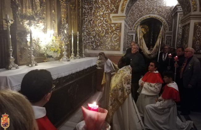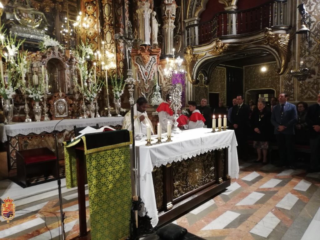 Siguiendo el mandato de las Constituciones de la Hermandad, en la tarde de ayer (segundo viernes de mes), se celebró la Misa de Hermandad con posterior Procesión con su Divina Majestad por las capillas de la Basílica.