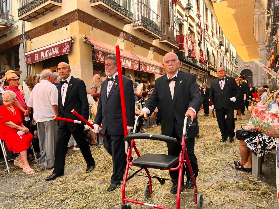 La Hermandad Sacramental de la Virgen de las Angustias ha participado con un numeroso grupo de personas pertenecientes a los Cuerpos de Horquilleros, Palieros y Hermanas Cofrades de la Hermandad, presididos por su Hermano Mayor, D. Antonio González Martín, y su Junta de Gobierno. Para la Hermandad ha sido motivo de satisfacción y regocijo enormes haber podido participar en esta excepcional Procesión con Jesús Sacramentado, recorriendo las calles de Granada.