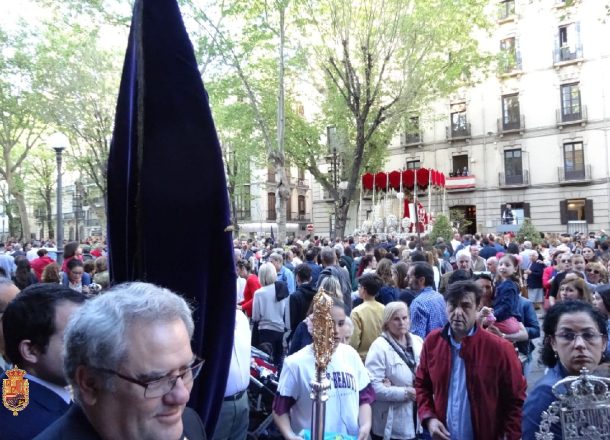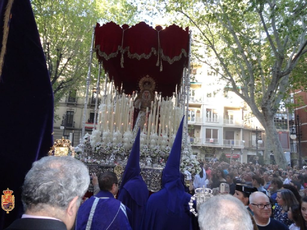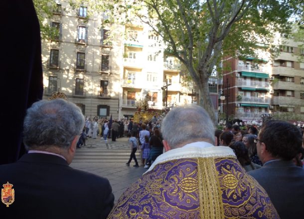 La Venerable Hermandad de Penitencia del Santísimo Cristo de la Lanzada y María Santísima de la Caridad en su discurrir hacia la Carrera Oficial para efectuar su anual Estación de Penitencia a la Santa Iglesia Catedral de la Encarnación Metropolitana de Granada, pasaba ante la Basílica de Nuestra Madre. Así recibíamos a nuestros Hermanos del Zaidín.
