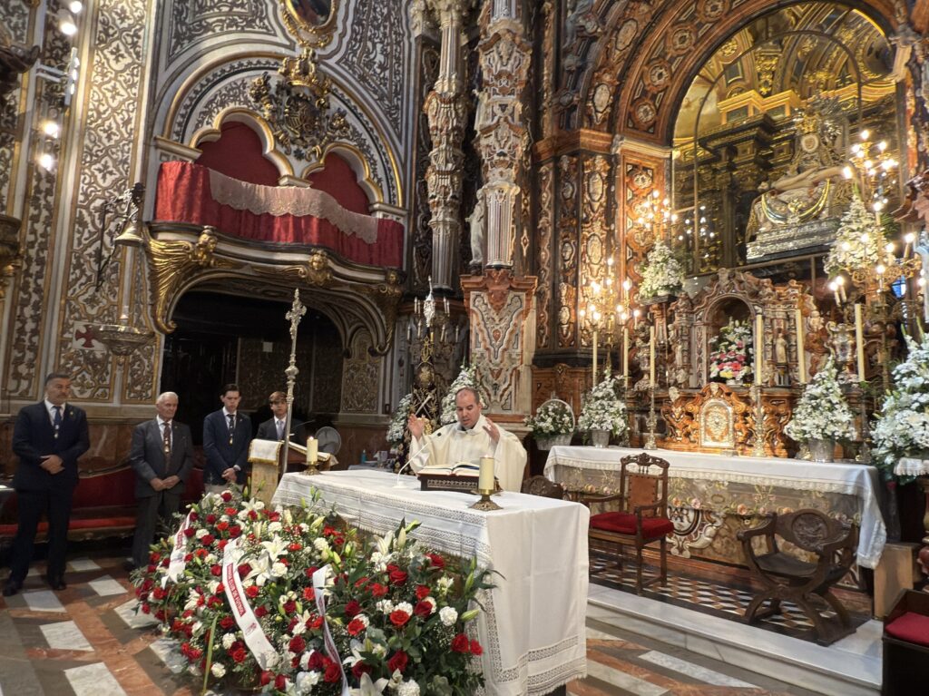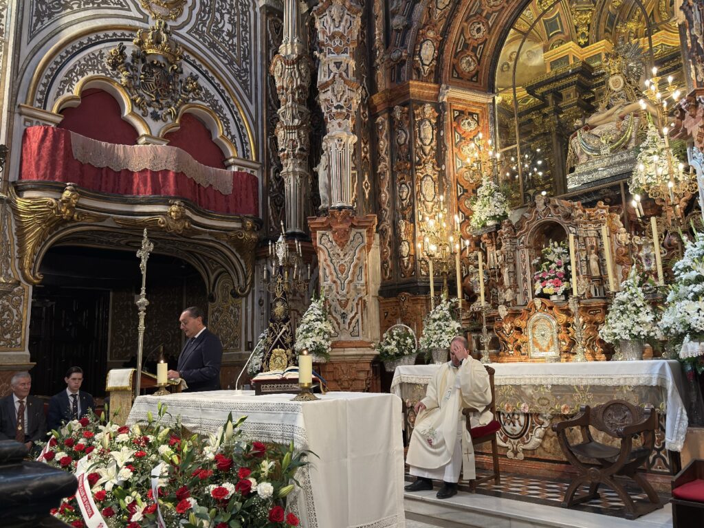 Todos entraron al templo colocándose en el crucero de la Basílica y en sus dos laterales de la pasillo central. Los capitanes de los tres equipos portaron tres grandiosos, atractivos y preciosos ramos de flores, que depositaron al pie del altar mayor.