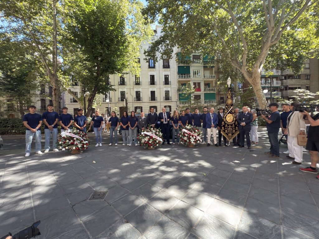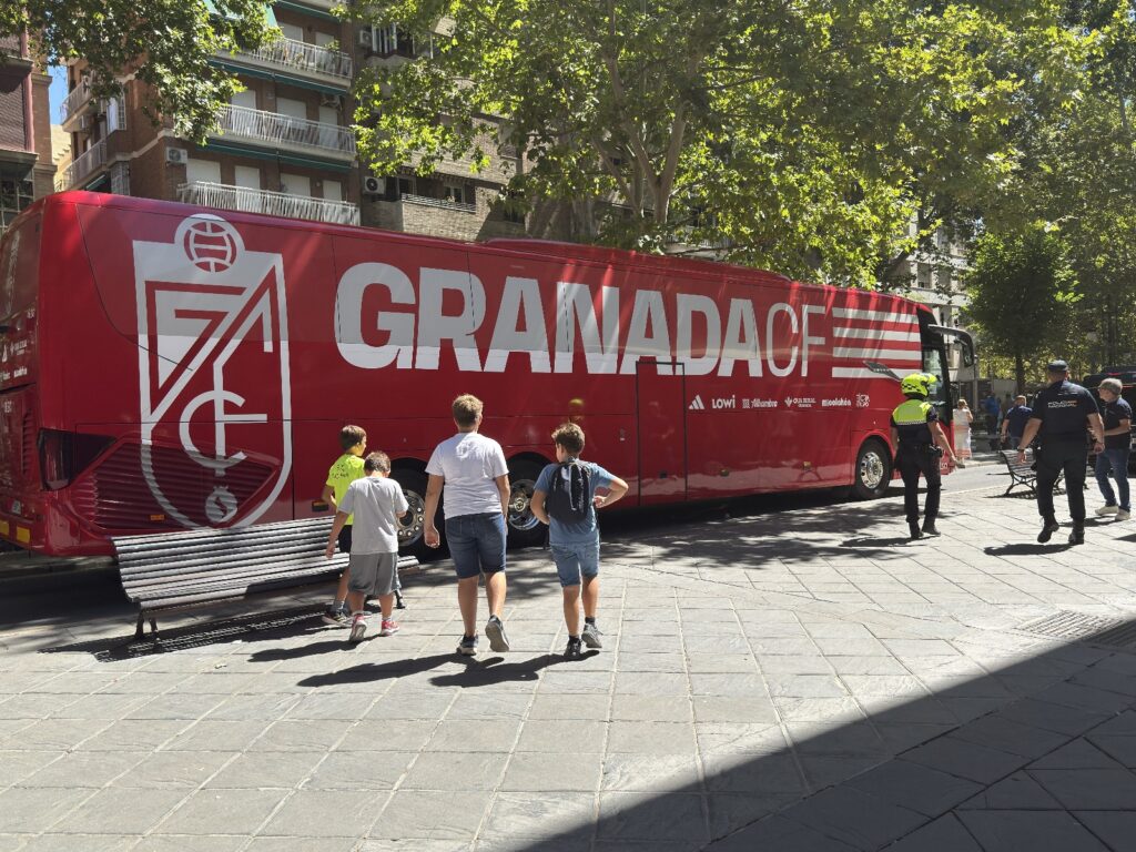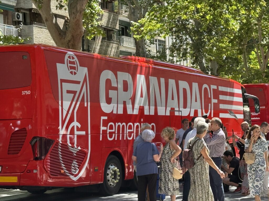 A las doce llegaban a las puertas de la Basílica de la Virgen de las Angustias tres autocares del Granada Club de Fútbol con todos los jugadores de la primera plantilla masculina, con su entrenador, D. José Rojo Pacheta; todas las jugadoras de la plantilla femenina, plantilla del Recreativo. Al frente de la Junta Directiva del Club ha venido el Director General del Club, D. Alfredo García Amado, acompañado de varios cargos de la Junta Directiva.