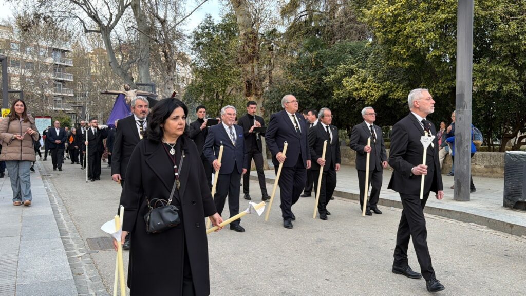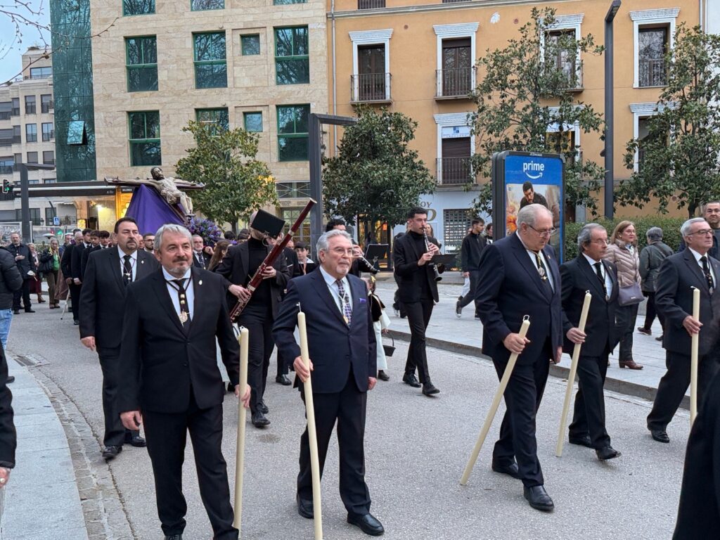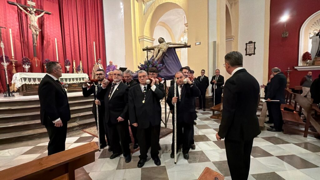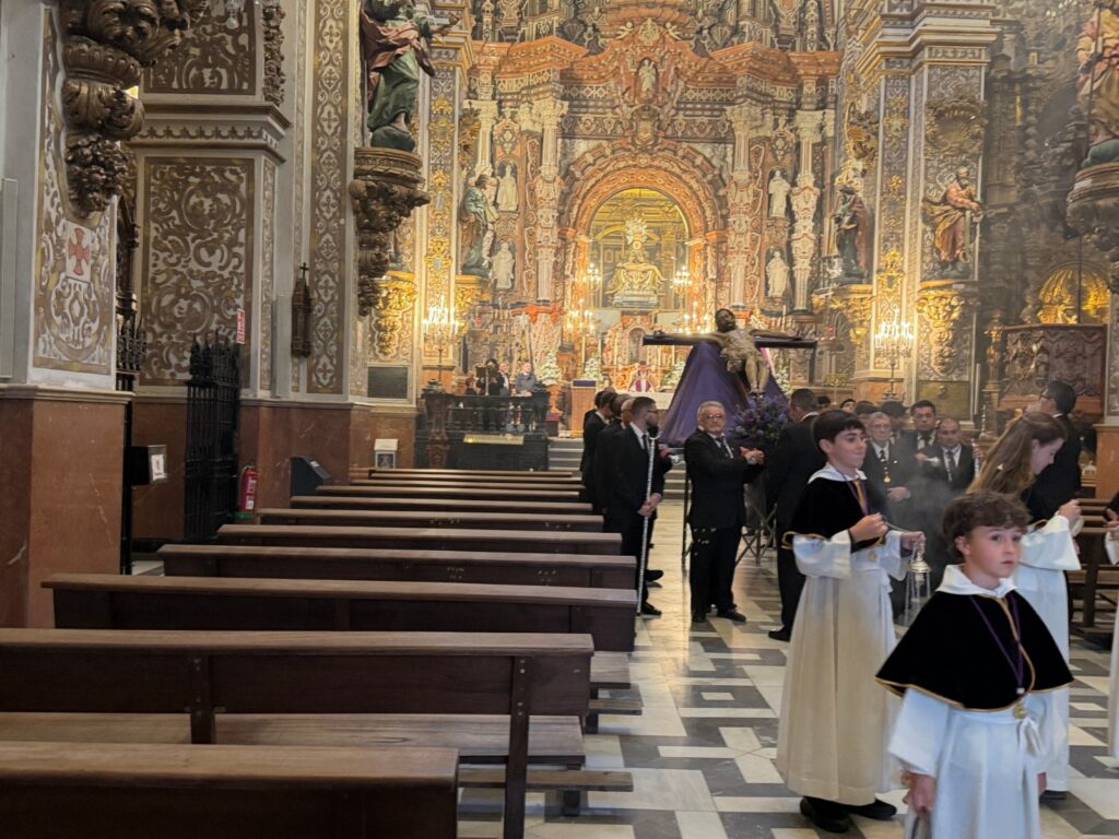 El Viacrucis con la Sagrada Imagen empezó a las seis de la tarde y dentro de la Basílica se rezaron las cinco primeras estaciones, dirigidas por el Párroco de la Basílica y Consiliario de la Hermandad, D. Blas Gerardo Gordo Jiménez, que estuvo presente en todo el Vía Crucis, acompañado de la Junta de Gobierno de la Hermandad, con su Presidente, D. Antonio González Martín. En la Parroquia de San José de Calasanz se rezaron cuatro estaciones. Todo transcurrió con sumo silencio y recogimiento por parte de todos los hermanos y hermanas de la Hermandad, formando dos filas y con la medalla de la Hermandad y demás fieles que, en un número considerable, acompañaron el Santo Vía Crucis.