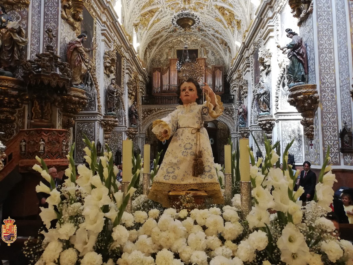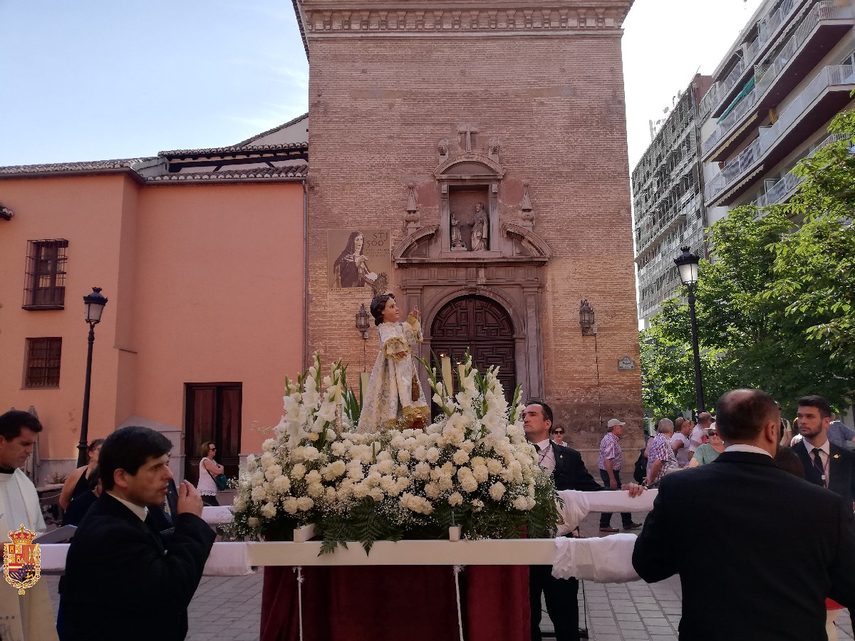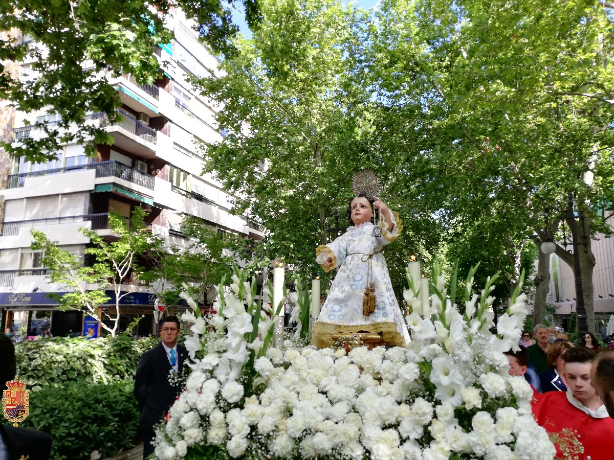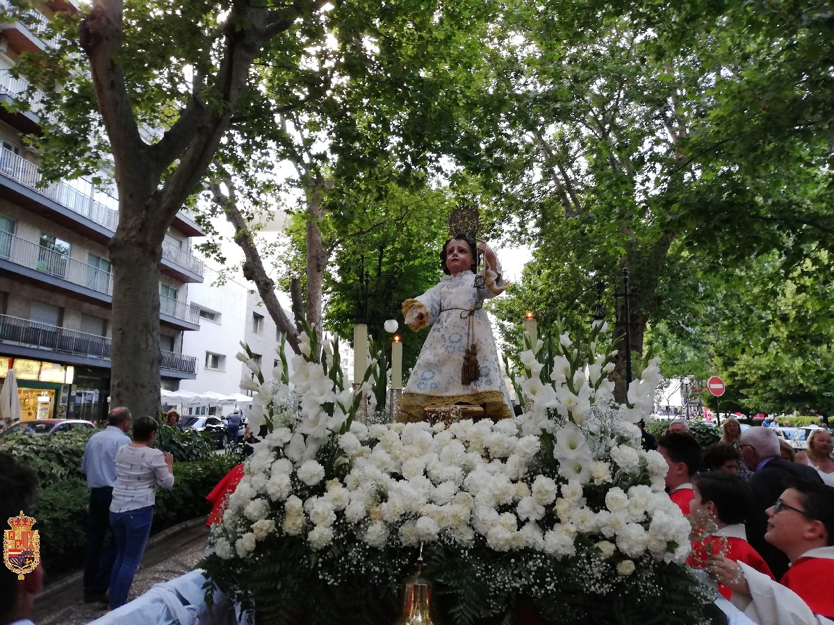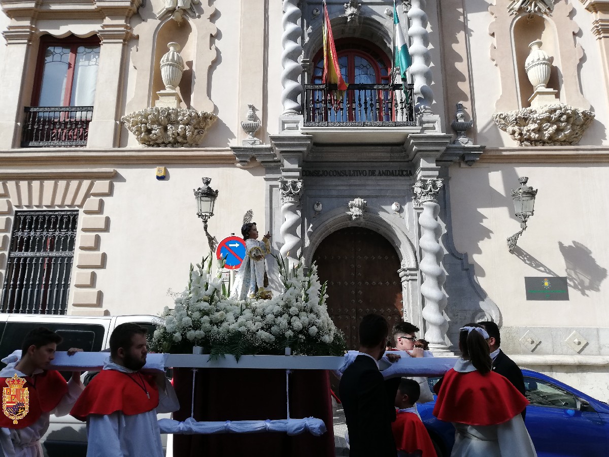 El cortejo partía a las 18:00 horas con la Sagrada Imagen del Niño Jesús portada por los mas jóvenes de la hermandad, el grupo de Acólitos. Es el futuro de nuestra Hermandad.