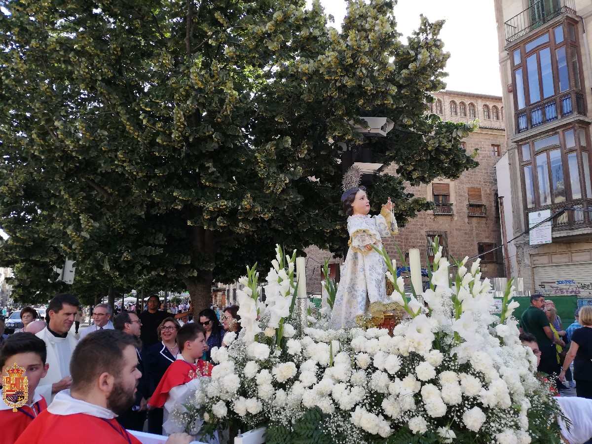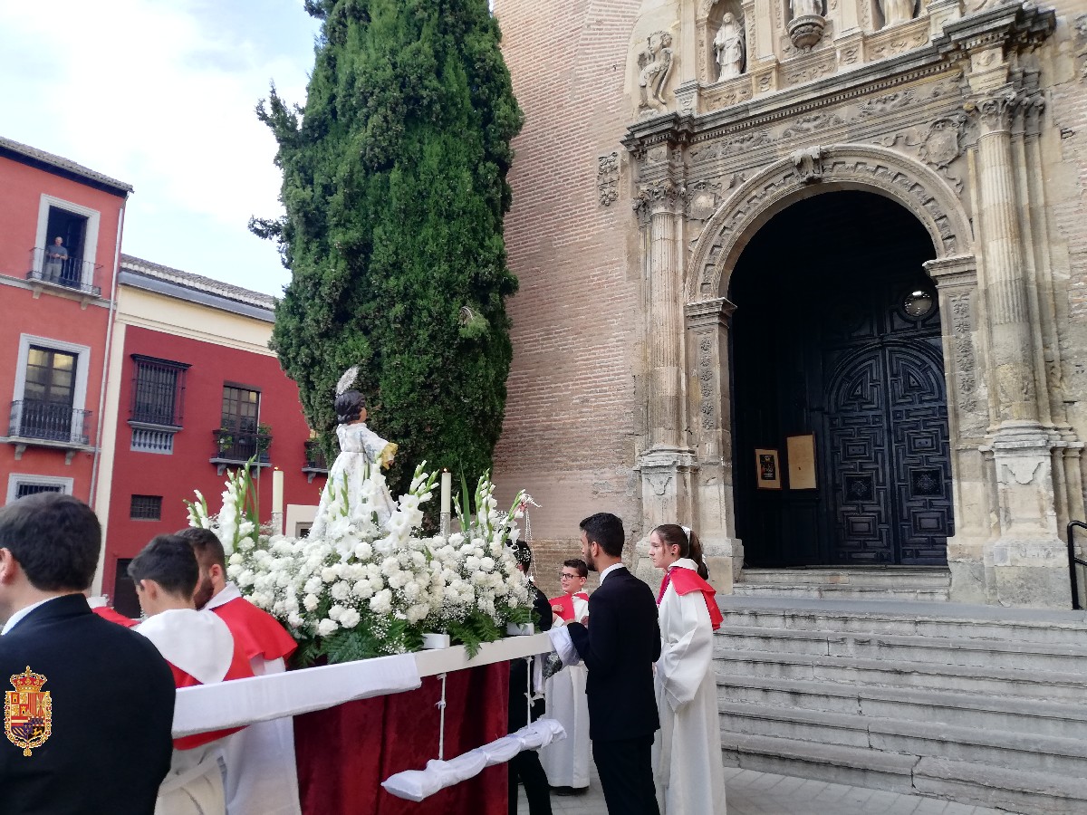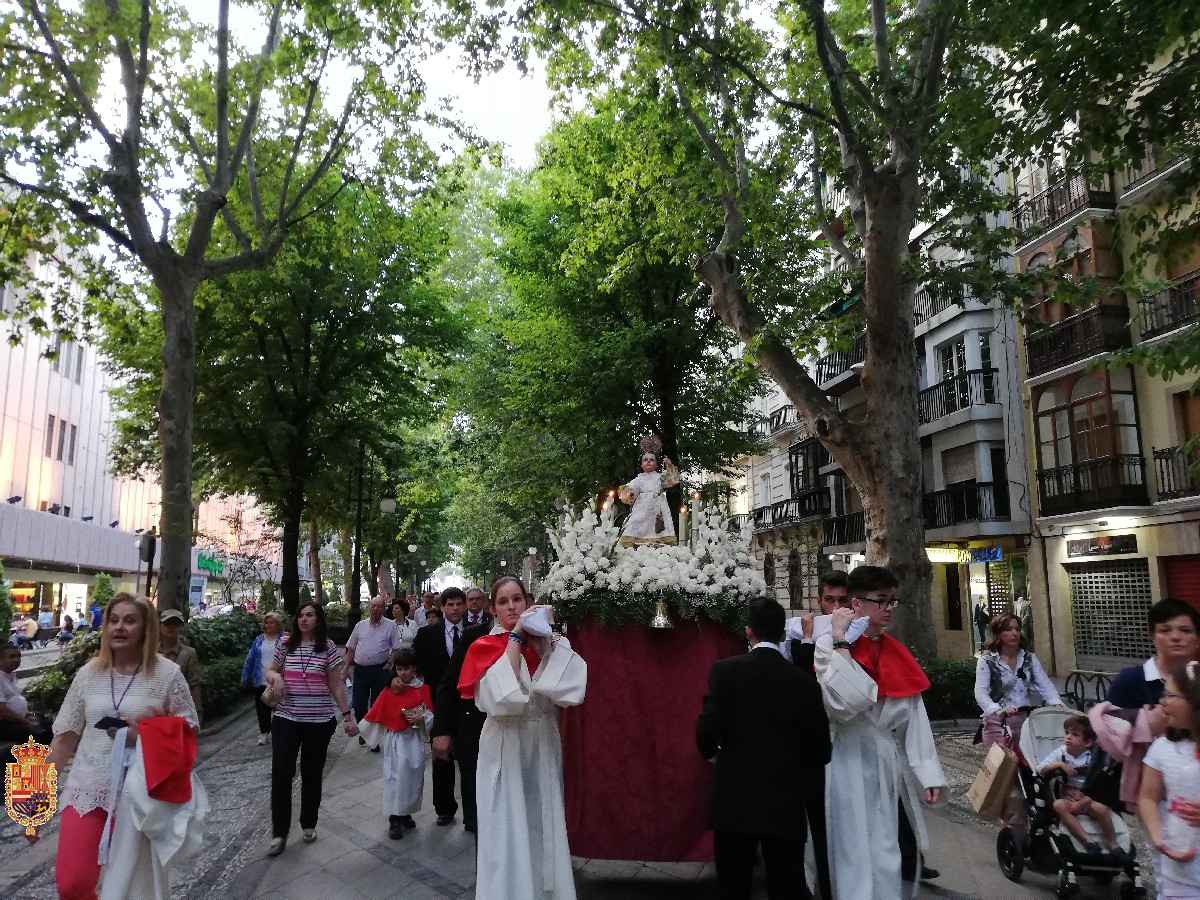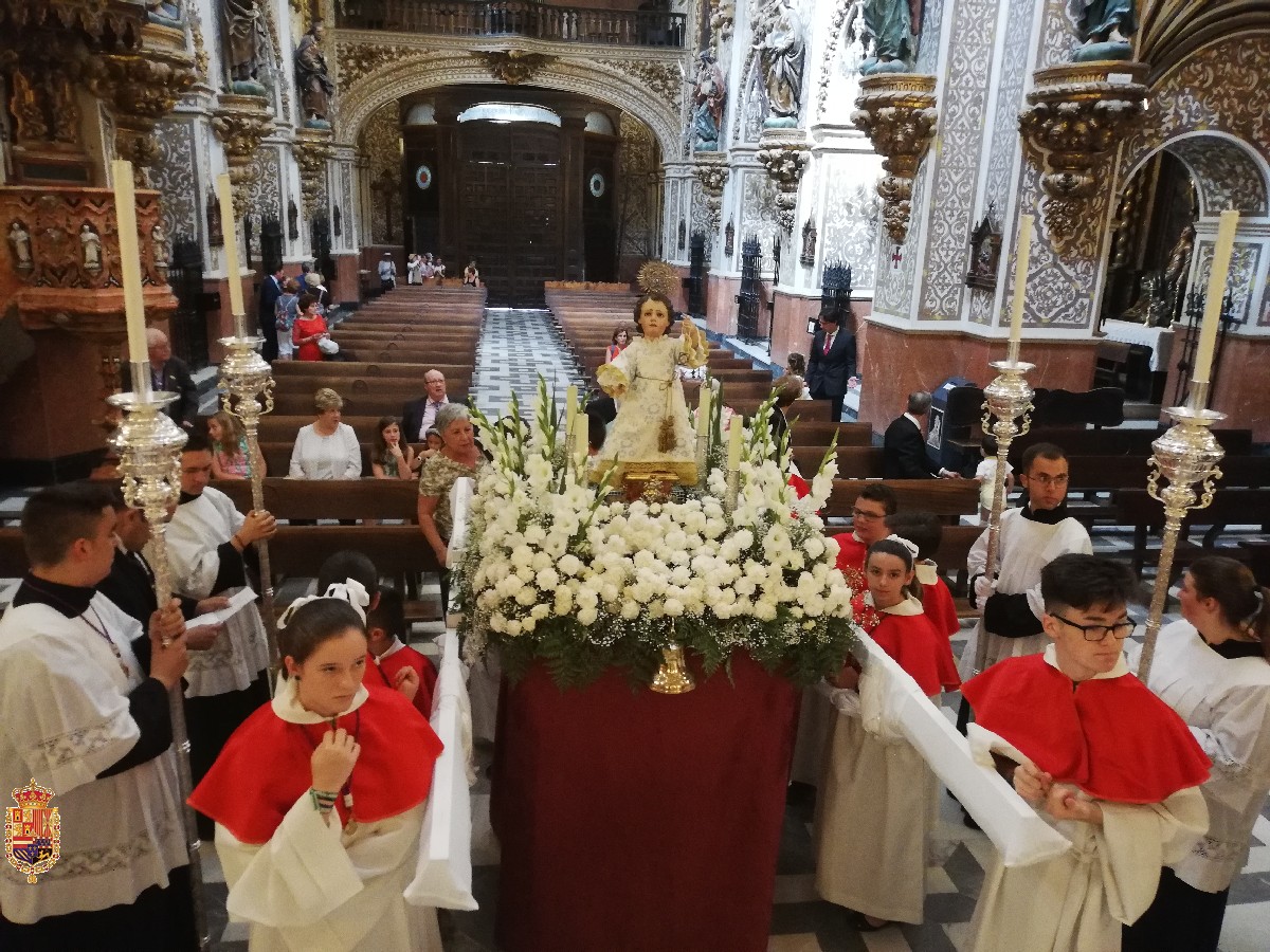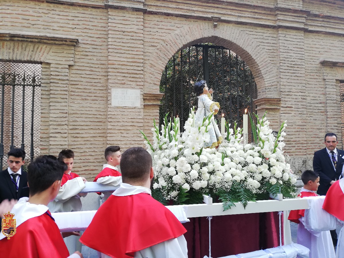 El cortejo partía a las 18:00 horas con la Sagrada Imagen del Niño Jesús portada por los mas jóvenes de la hermandad, el grupo de Acólitos. Es el futuro de nuestra Hermandad.