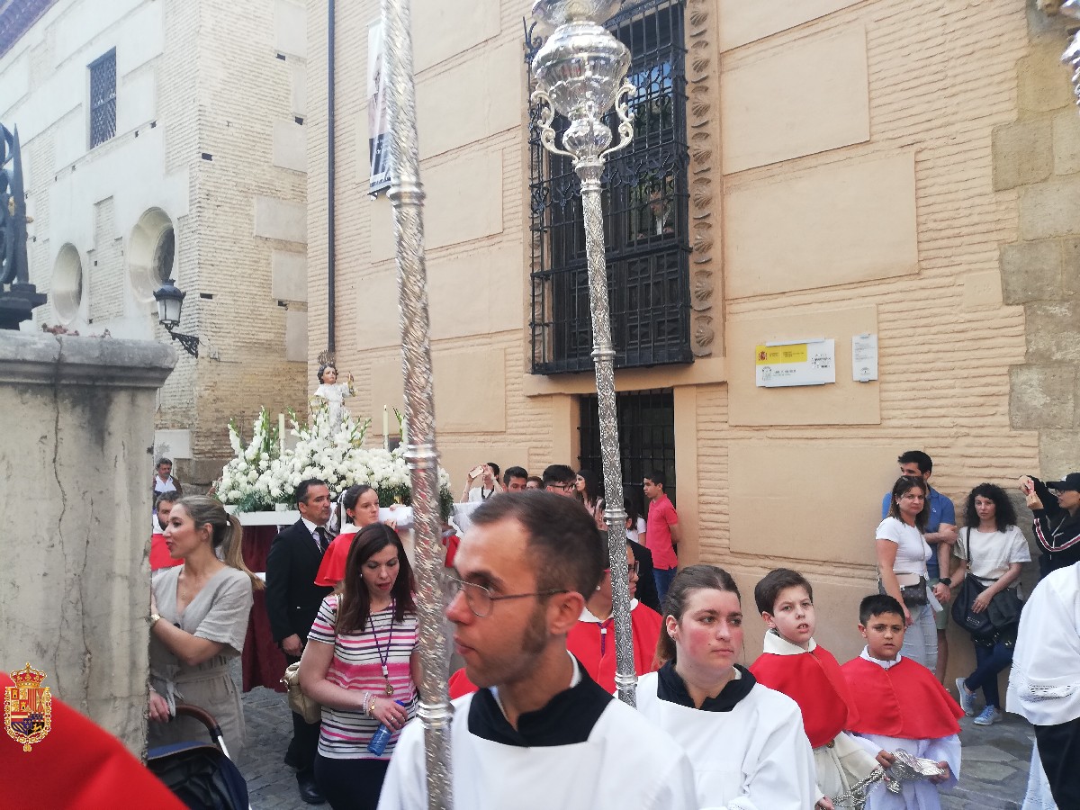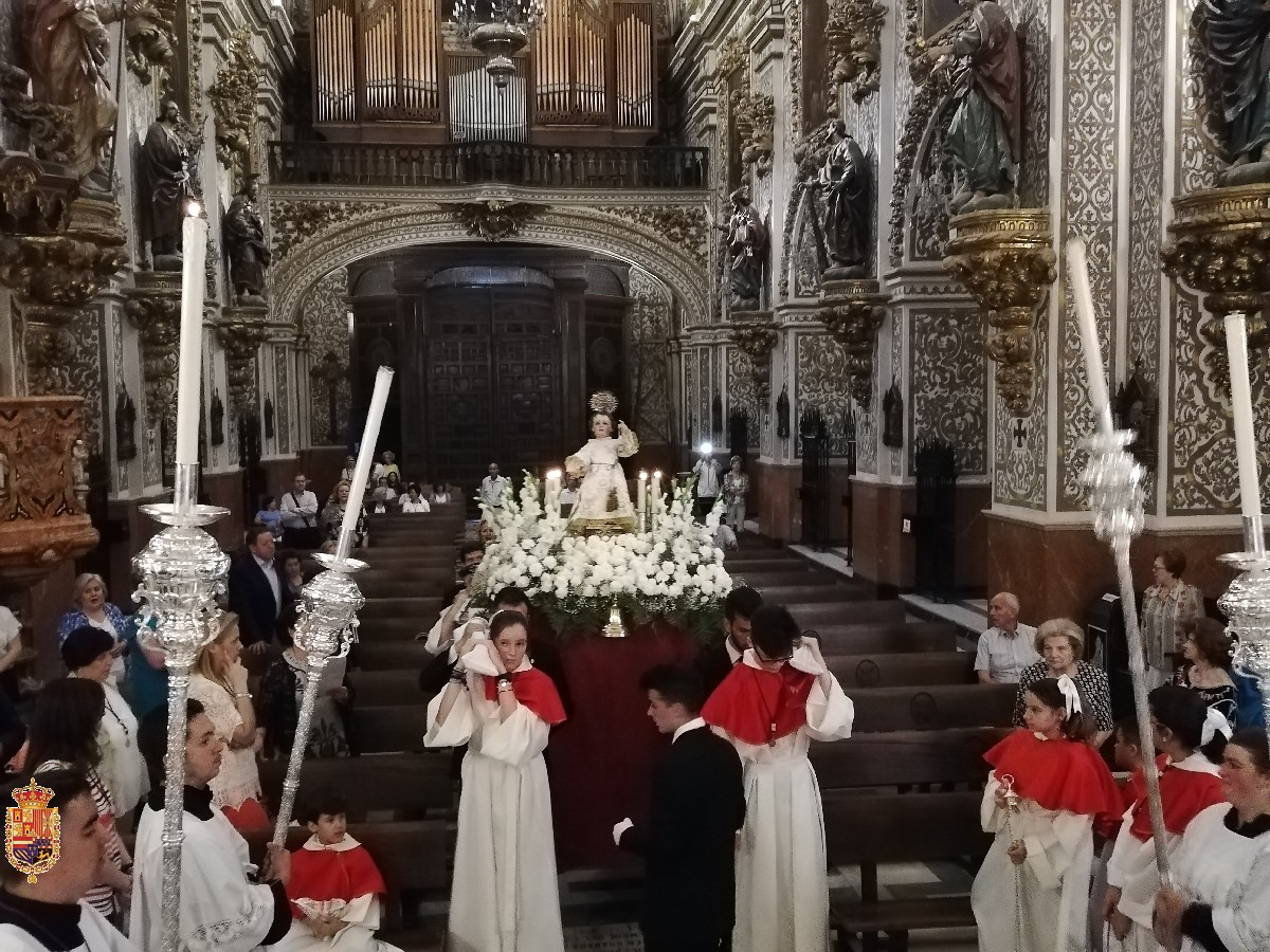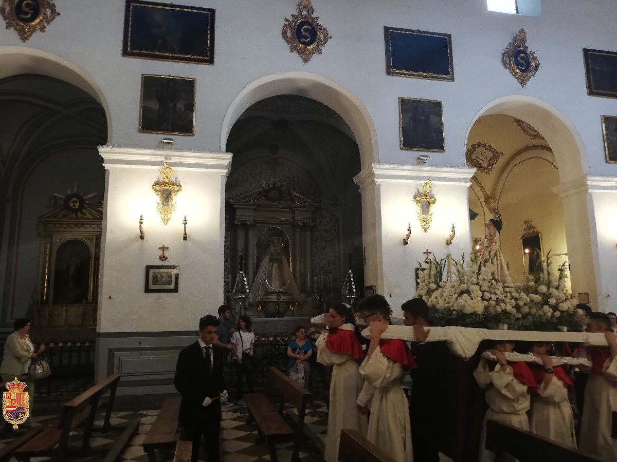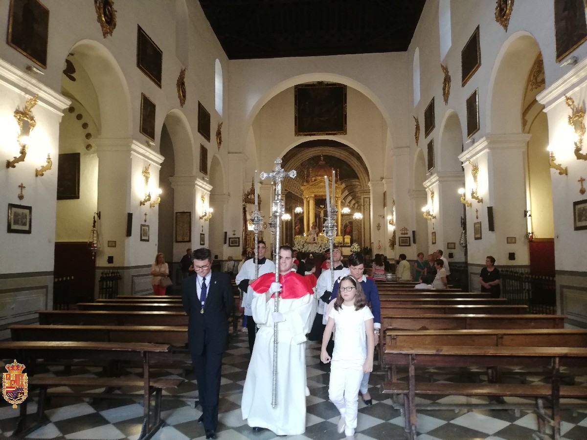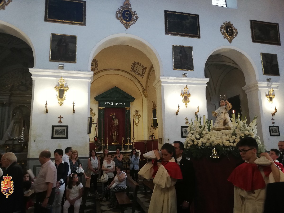 El cortejo partía a las 18:00 horas con la Sagrada Imagen del Niño Jesús portada por los mas jóvenes de la hermandad, el grupo de Acólitos. Es el futuro de nuestra Hermandad.