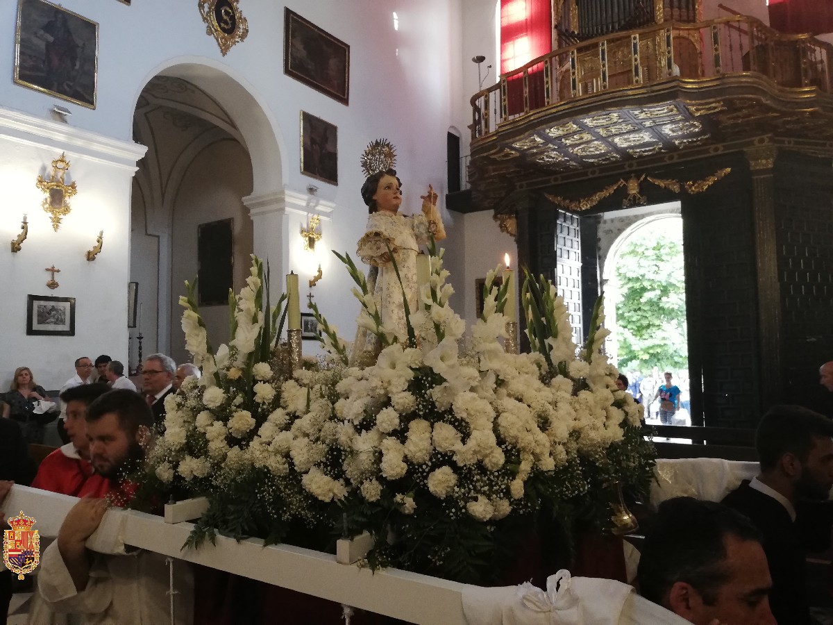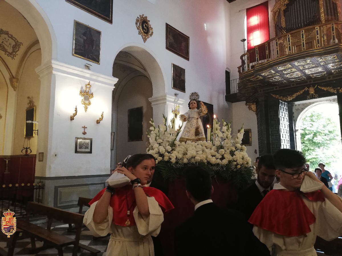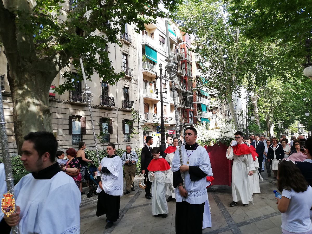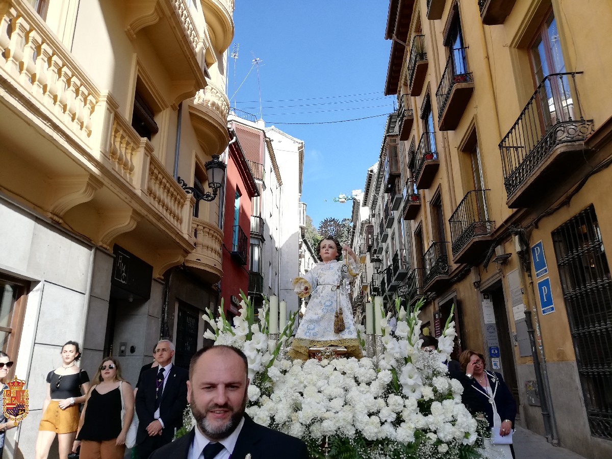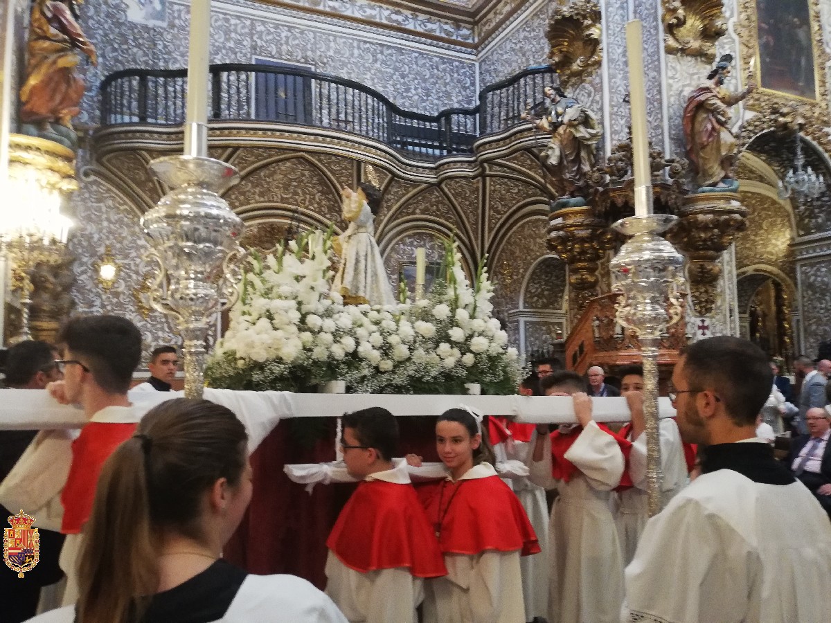 El cortejo partía a las 18:00 horas con la Sagrada Imagen del Niño Jesús portada por los mas jóvenes de la hermandad, el grupo de Acólitos. Es el futuro de nuestra Hermandad.