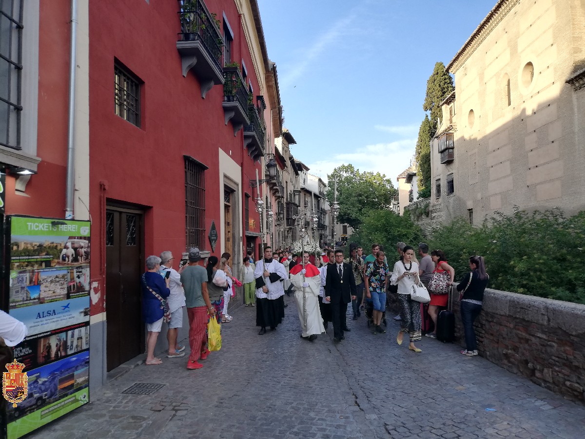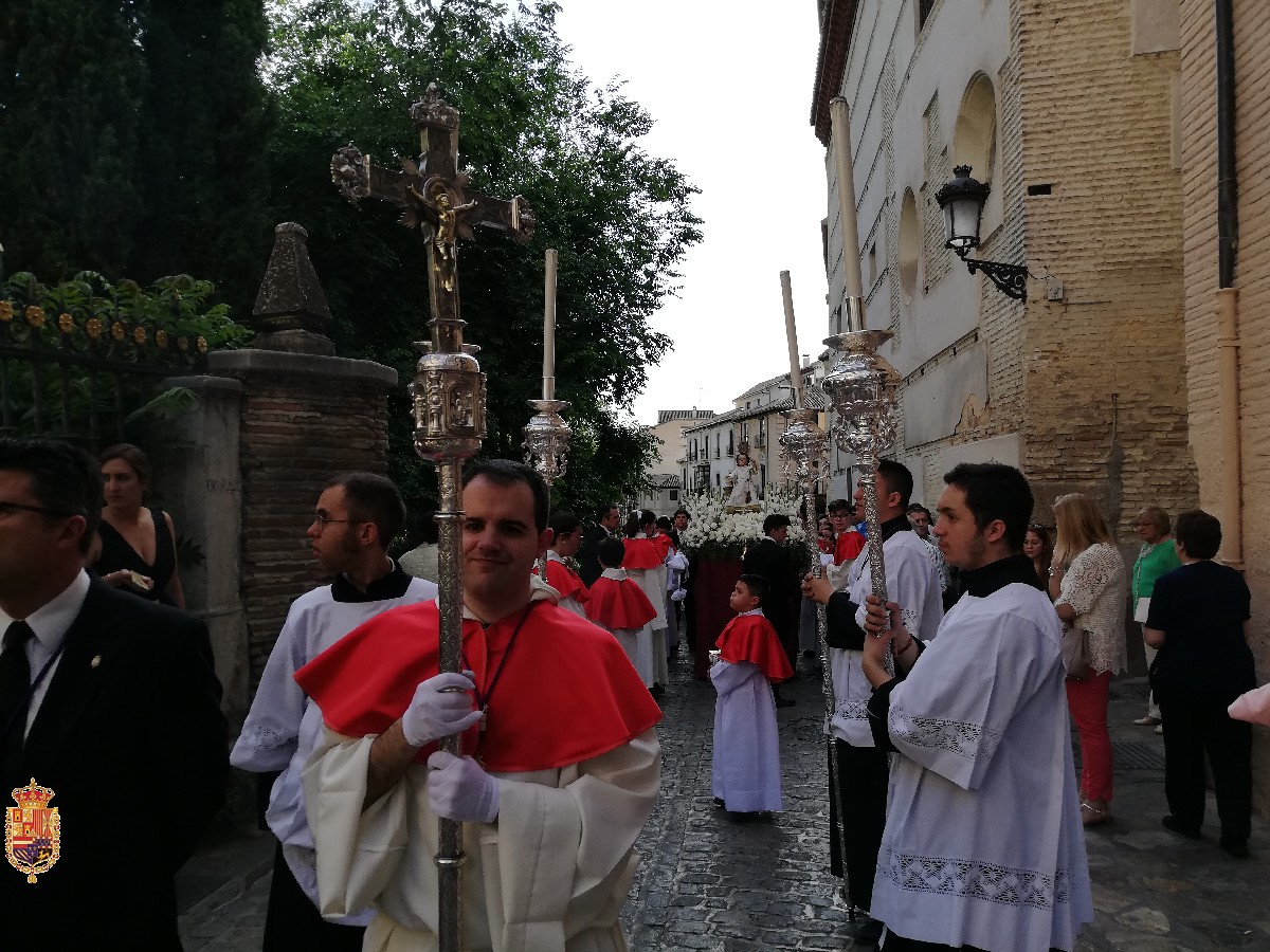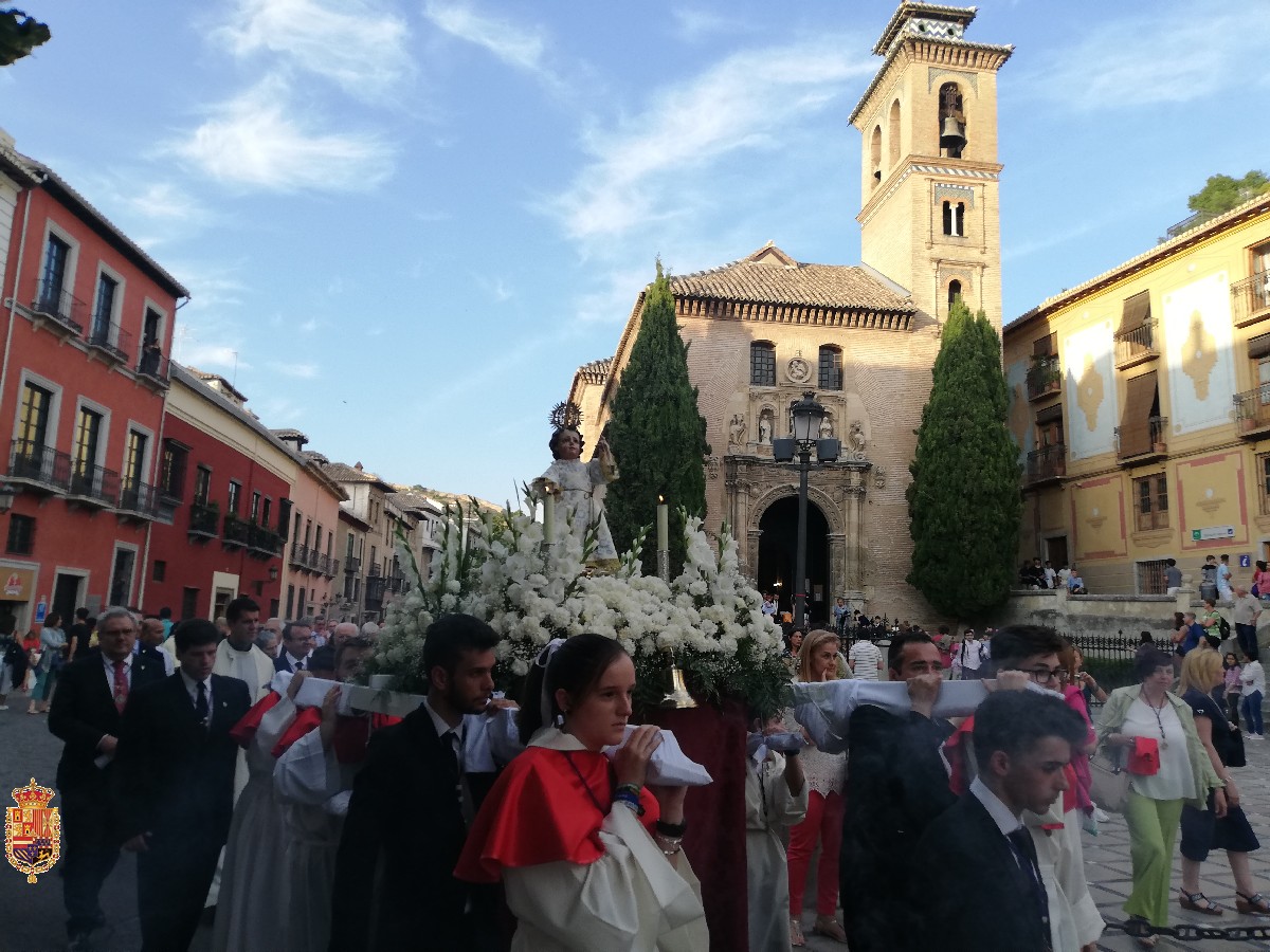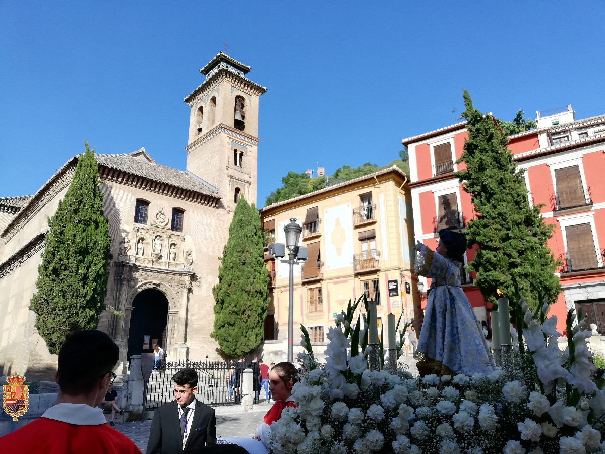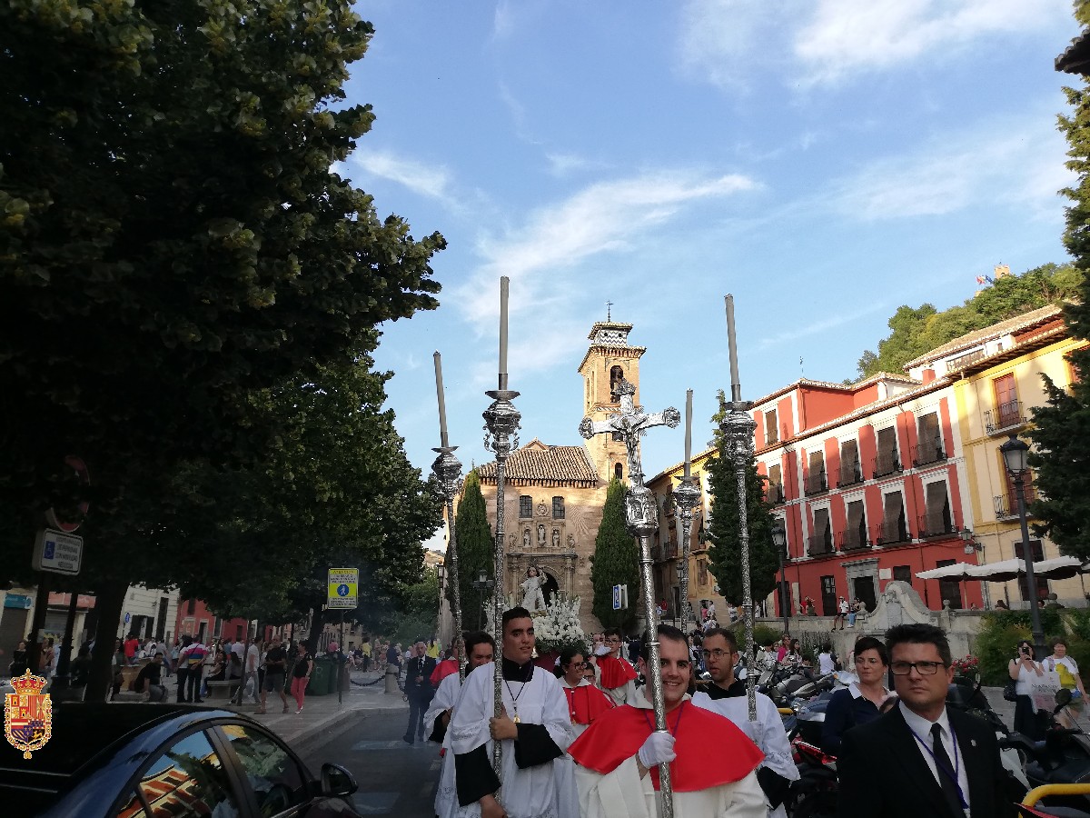 El cortejo transcurrió por Carrera de la Virgen y San Matías hasta adentrarse por el entorno del Monasterio de las Carmelitas Calzadas para salir por la Cuesta de Gomérez a Plaza Nueva. Posteriormente, por la Carrera del Darro, continuábamos hasta la parroquial de San Pedro y San Pablo, donde nos recibía una representación de la Hermandad del Domingo de Ramos a eso de las 20:00 horas.