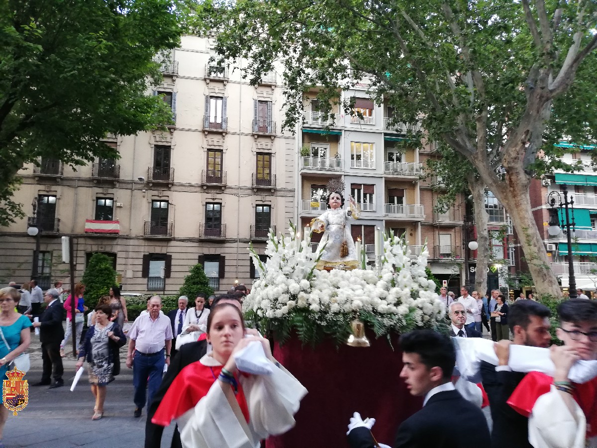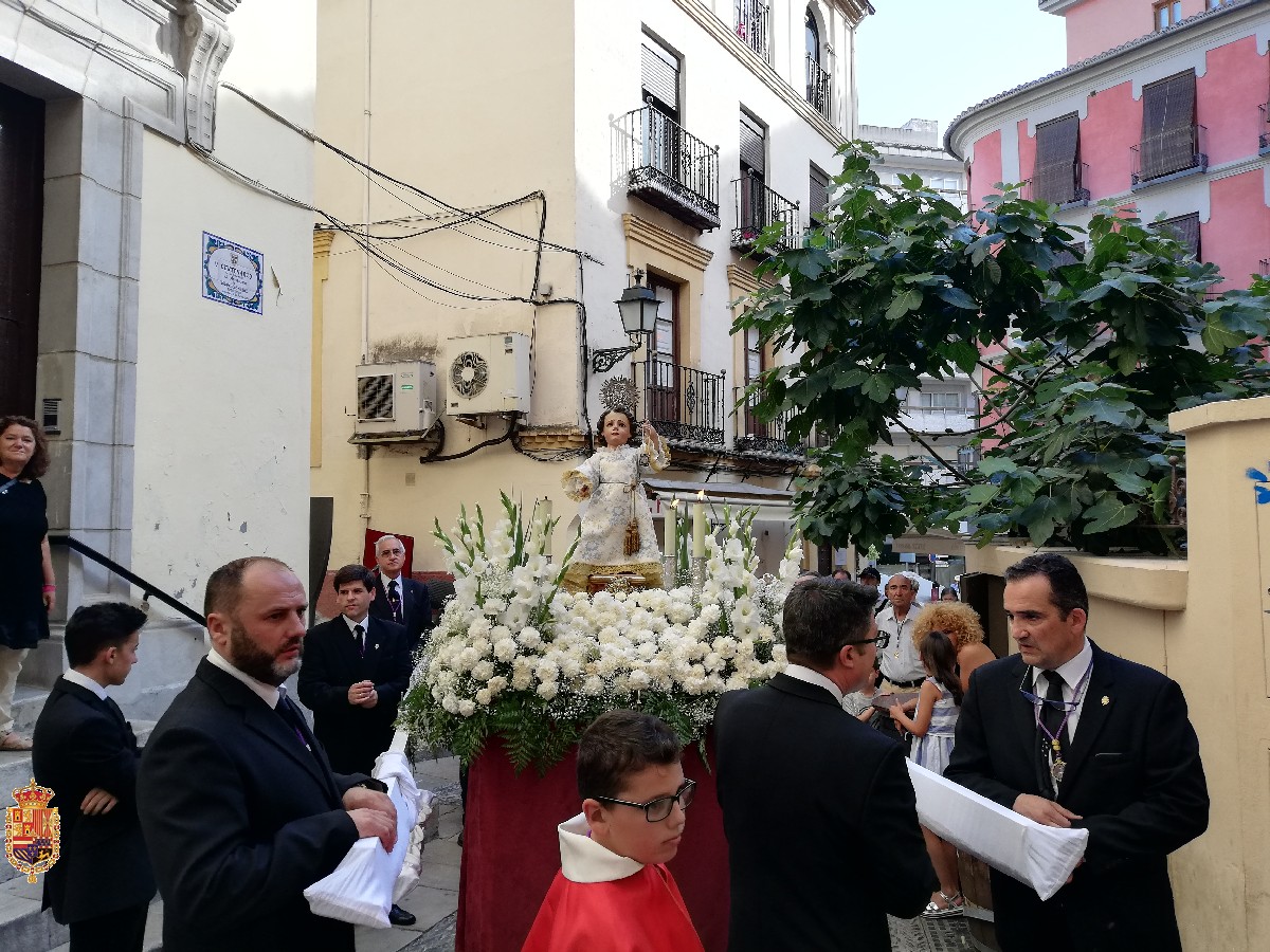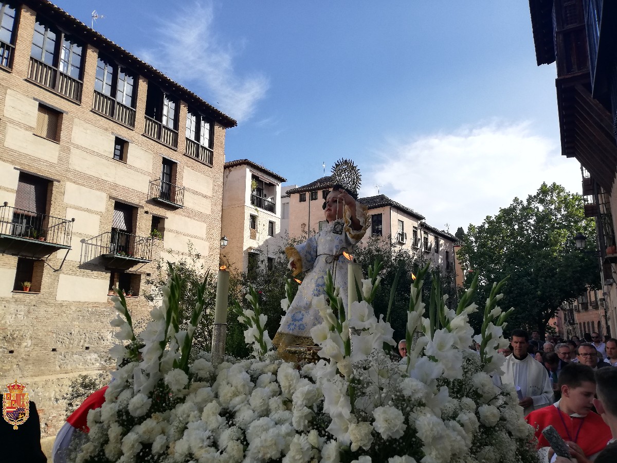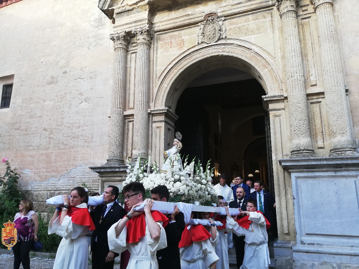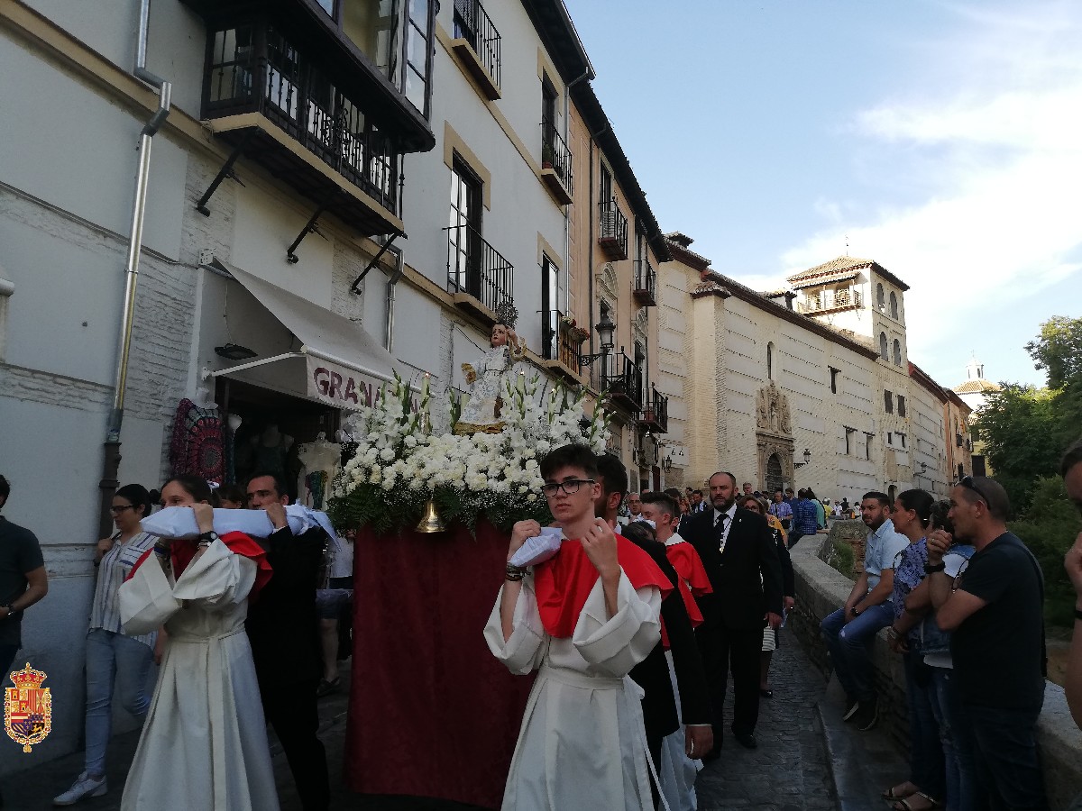 El cortejo transcurrió por Carrera de la Virgen y San Matías hasta adentrarse por el entorno del Monasterio de las Carmelitas Calzadas para salir por la Cuesta de Gomérez a Plaza Nueva. Posteriormente, por la Carrera del Darro, continuábamos hasta la parroquial de San Pedro y San Pablo, donde nos recibía una representación de la Hermandad del Domingo de Ramos a eso de las 20:00 horas.