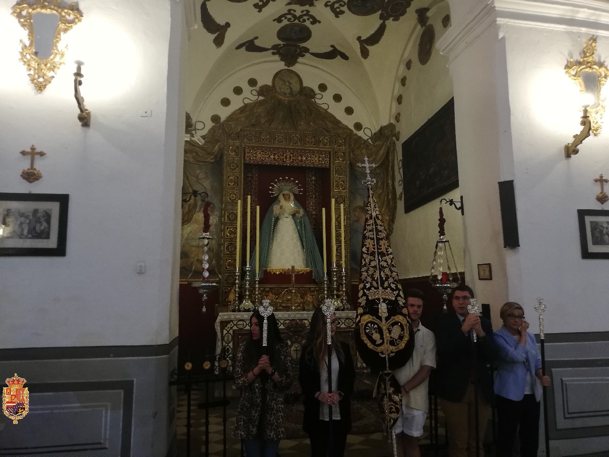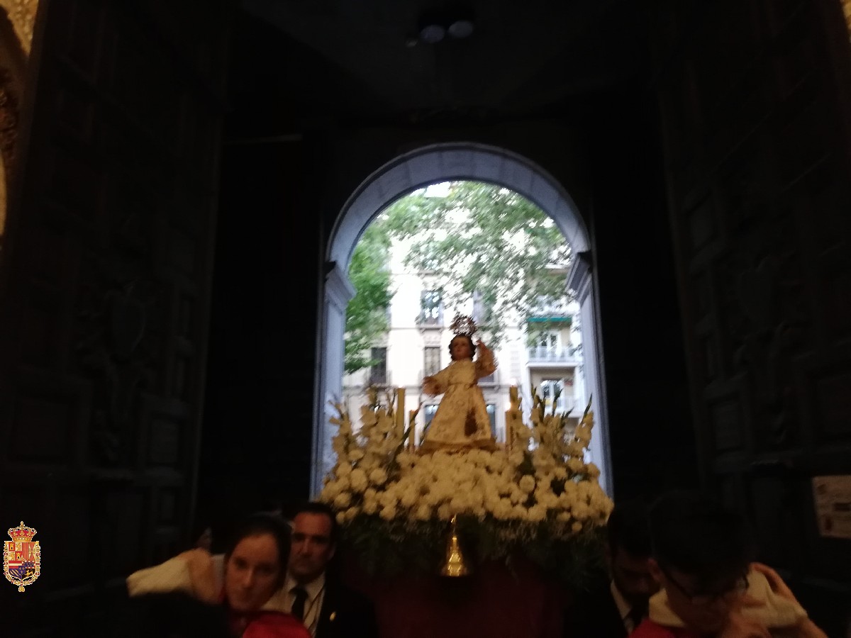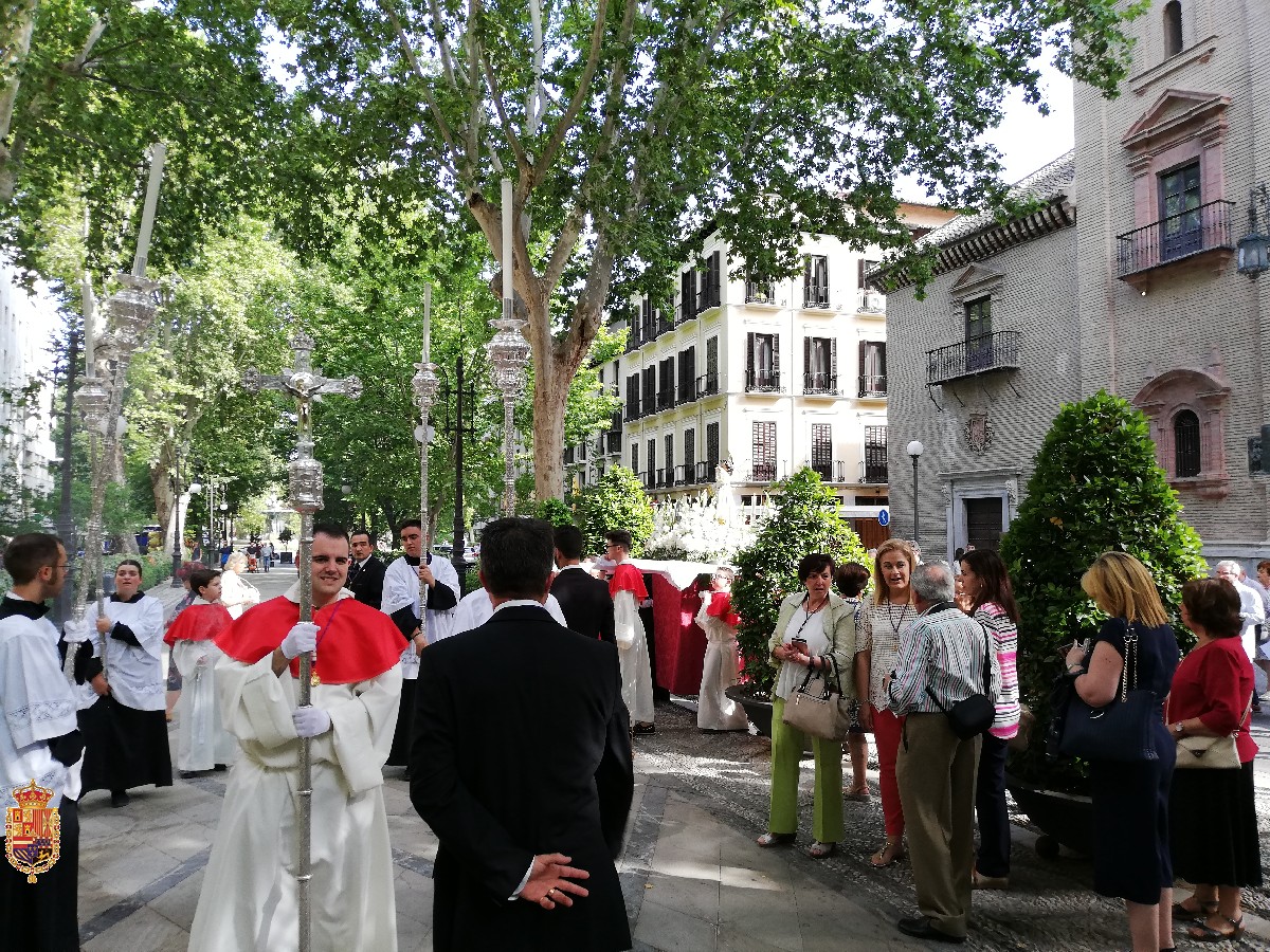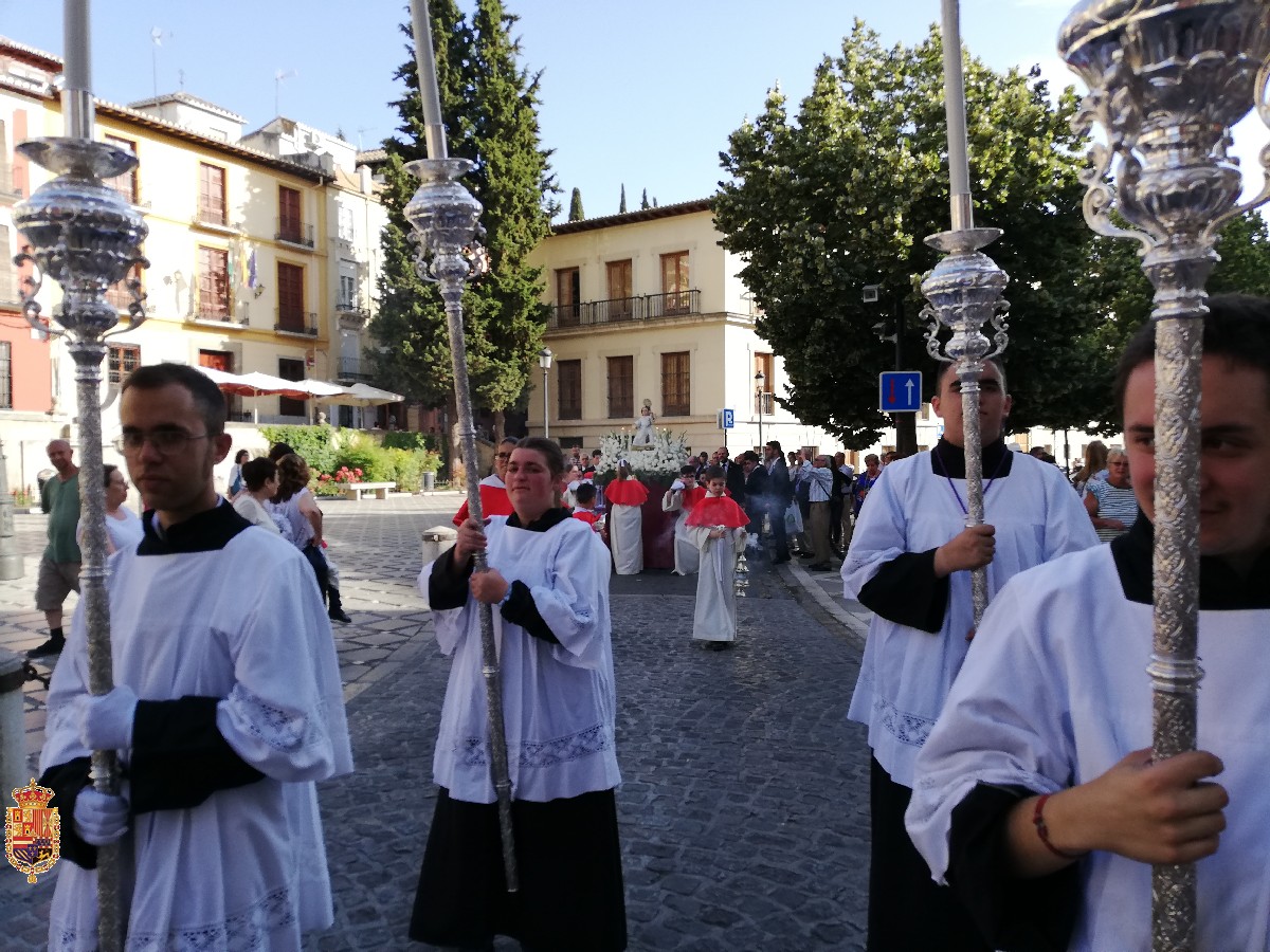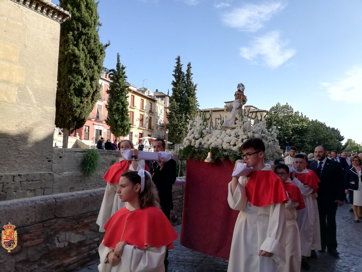 El cortejo transcurrió por Carrera de la Virgen y San Matías hasta adentrarse por el entorno del Monasterio de las Carmelitas Calzadas para salir por la Cuesta de Gomérez a Plaza Nueva. Posteriormente, por la Carrera del Darro, continuábamos hasta la parroquial de San Pedro y San Pablo, donde nos recibía una representación de la Hermandad del Domingo de Ramos a eso de las 20:00 horas.