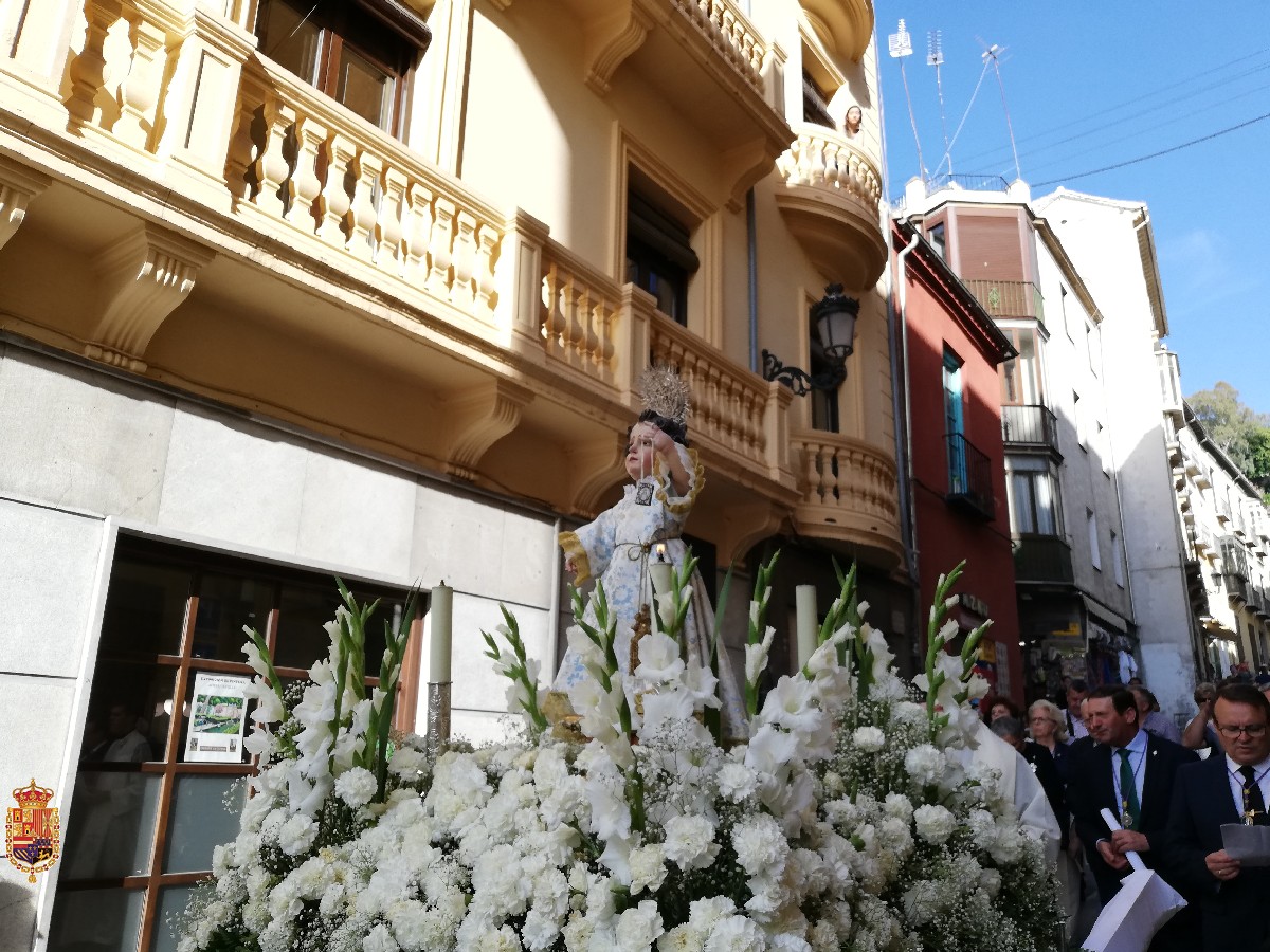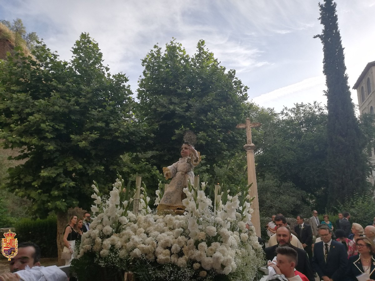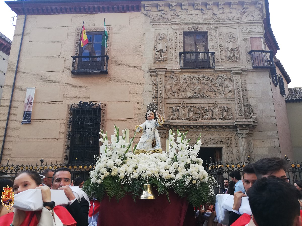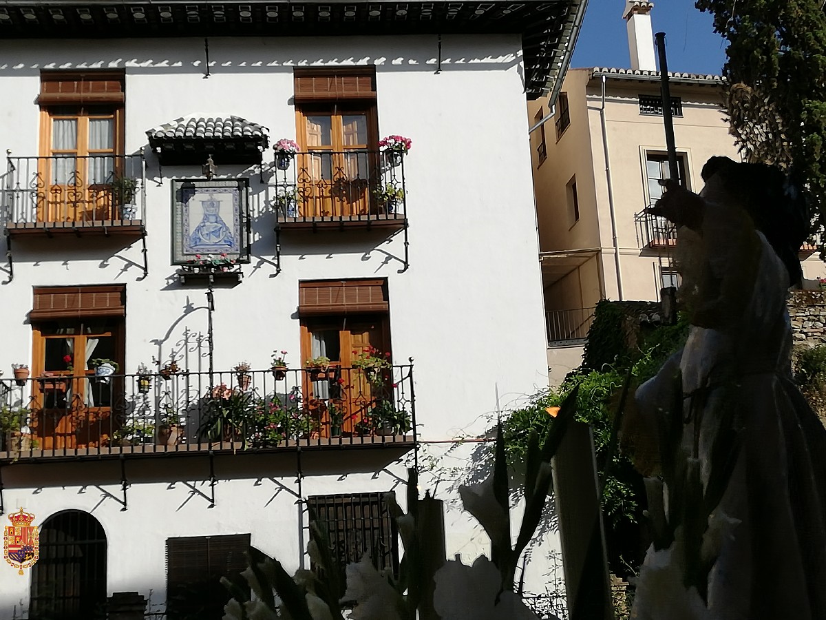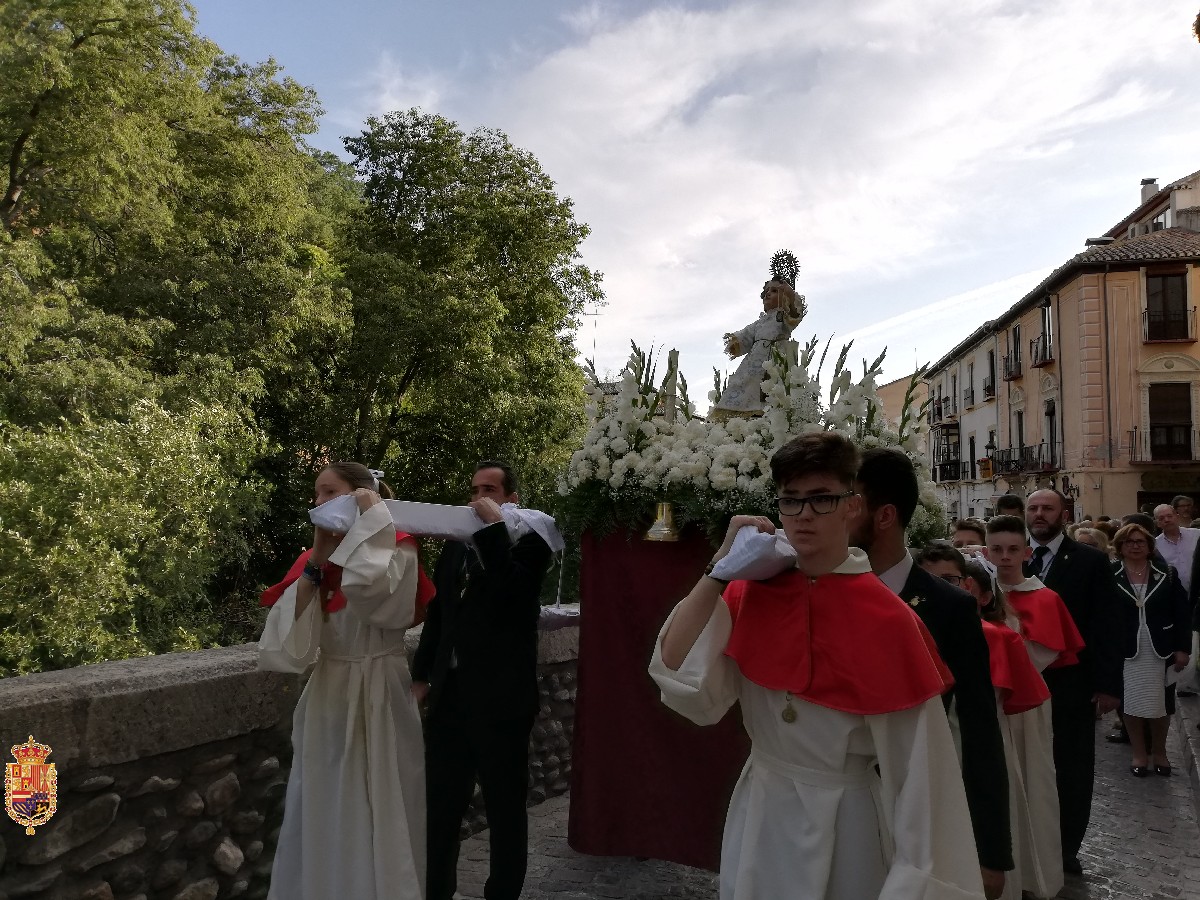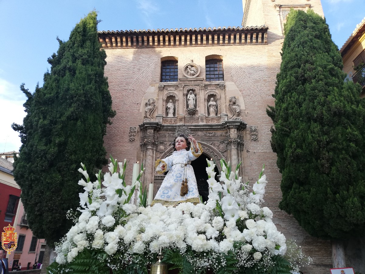 El regreso, nuevamente por Carrera del Darro, resultó de especial belleza con las torres de la Alhambra de maravilloso fondo de la Sagrada Imagen del Niño Dios.
